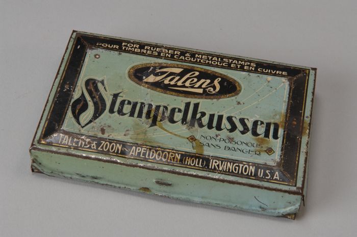 Blikken stempeldoos met "Talens stempelkussen"