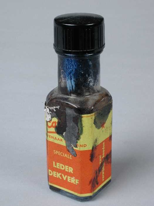 Metaalkleurig blik met etiket "Nedres Wasverf", gebr...