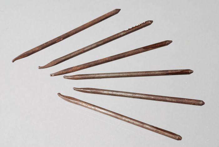 Metalen spijkerbak of spijkerschaal met zes vakken, ...