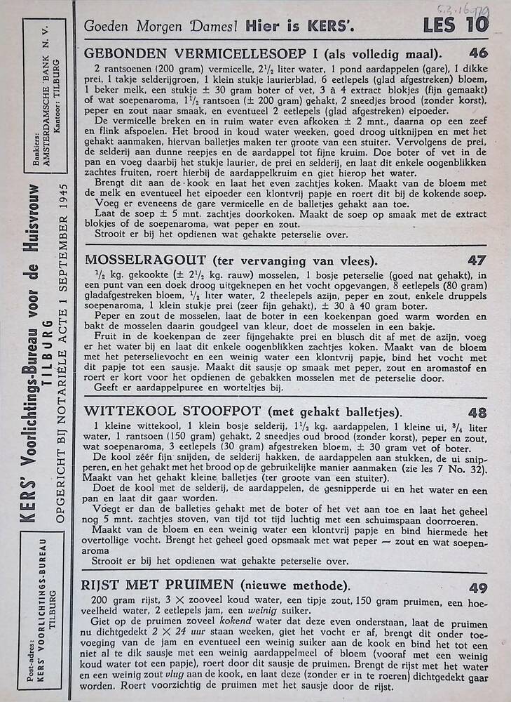 Kers' voorlichtingsbureau voor de huisvrouw. Les 10,...