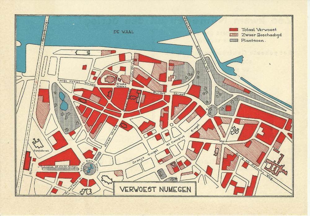 geïllustreerde kaart - wederopbouw - Nijmegen verwoest