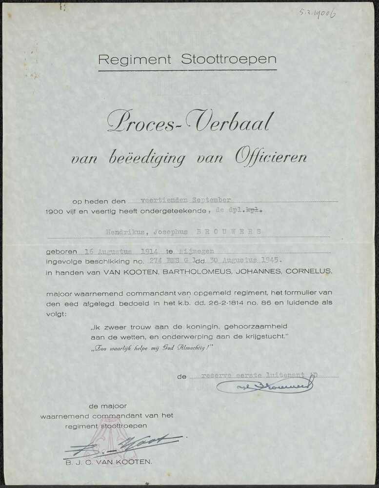 Proces verbaal van beëdiging van officieren dat H.J....
