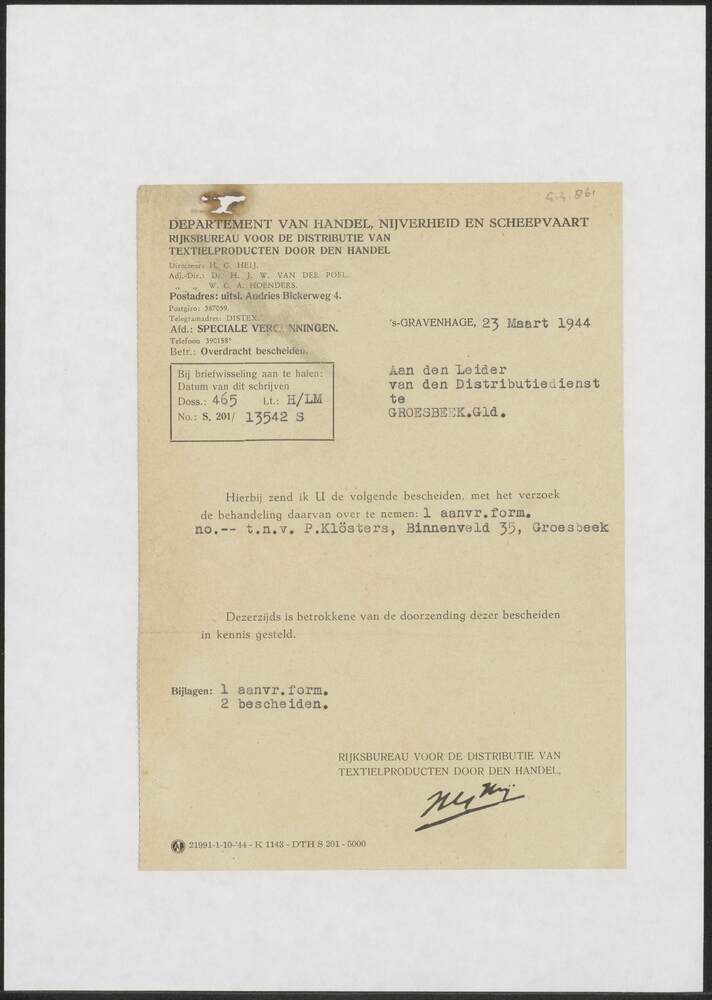 Tweede Distributiestamkaart van : Van Ooijen, Gijsbe...