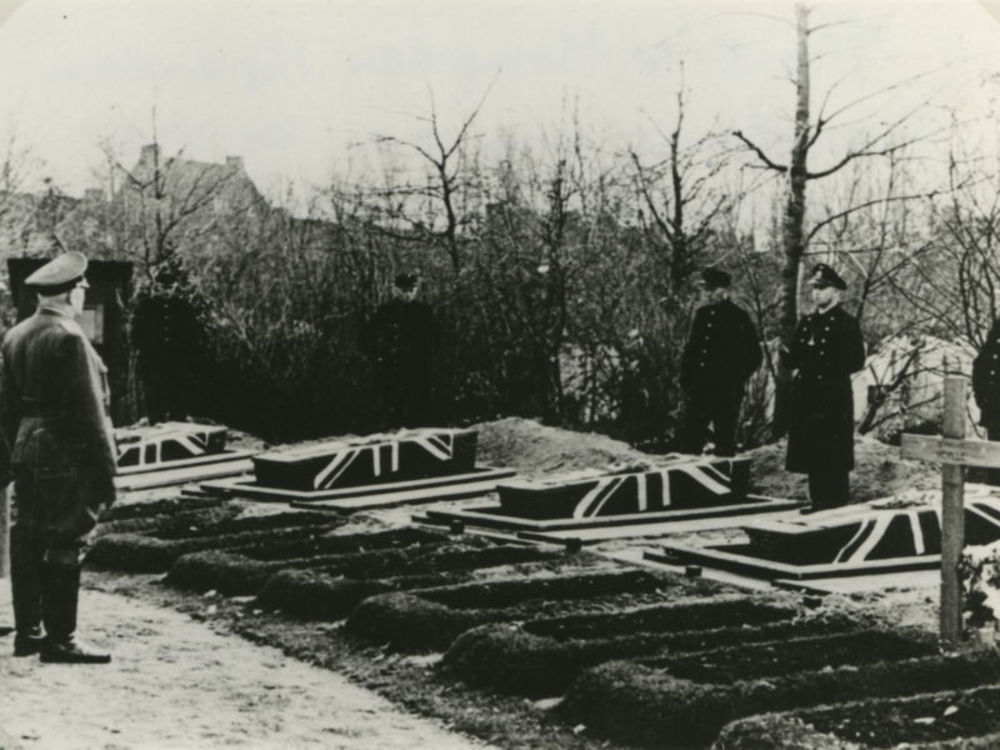 Foto begrafenis neergeschoten Britse vlieger. Duitse...