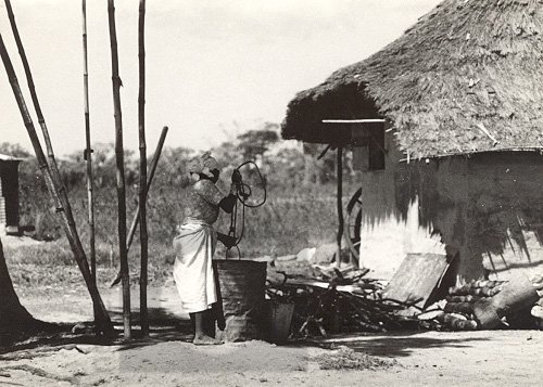De chief van Bosogodo met twee van zijn vrouwen, Con...