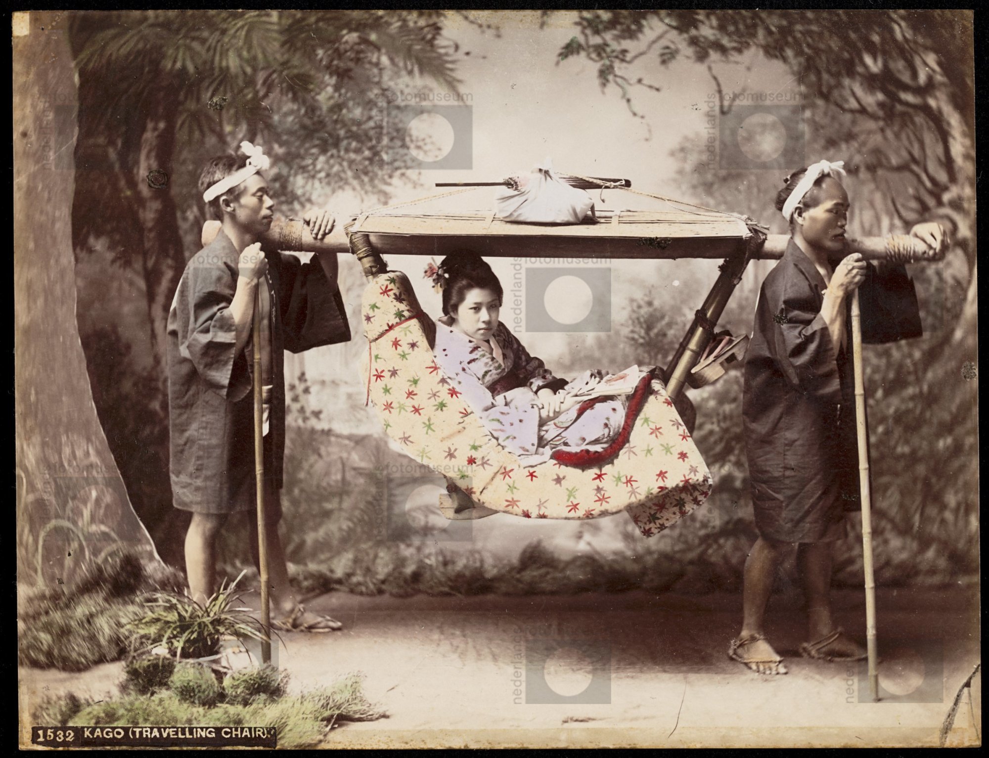 Twee vrouwen in een 'Jinrikisha', Japan (187...