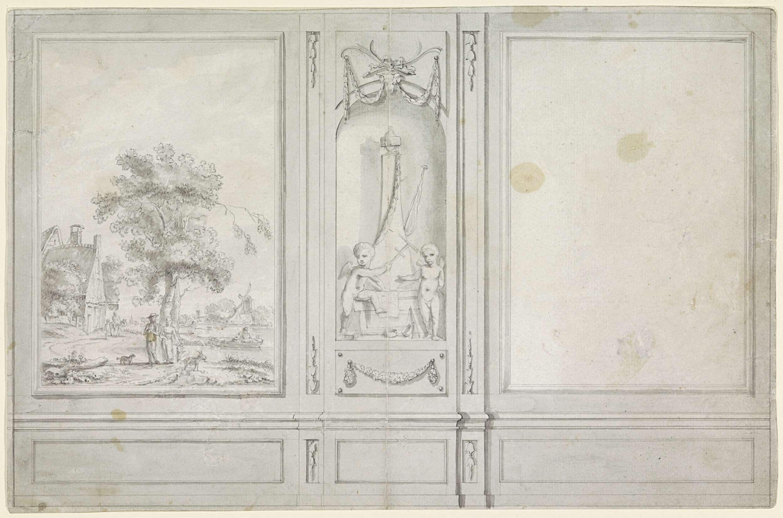 Panelen en nis met putti