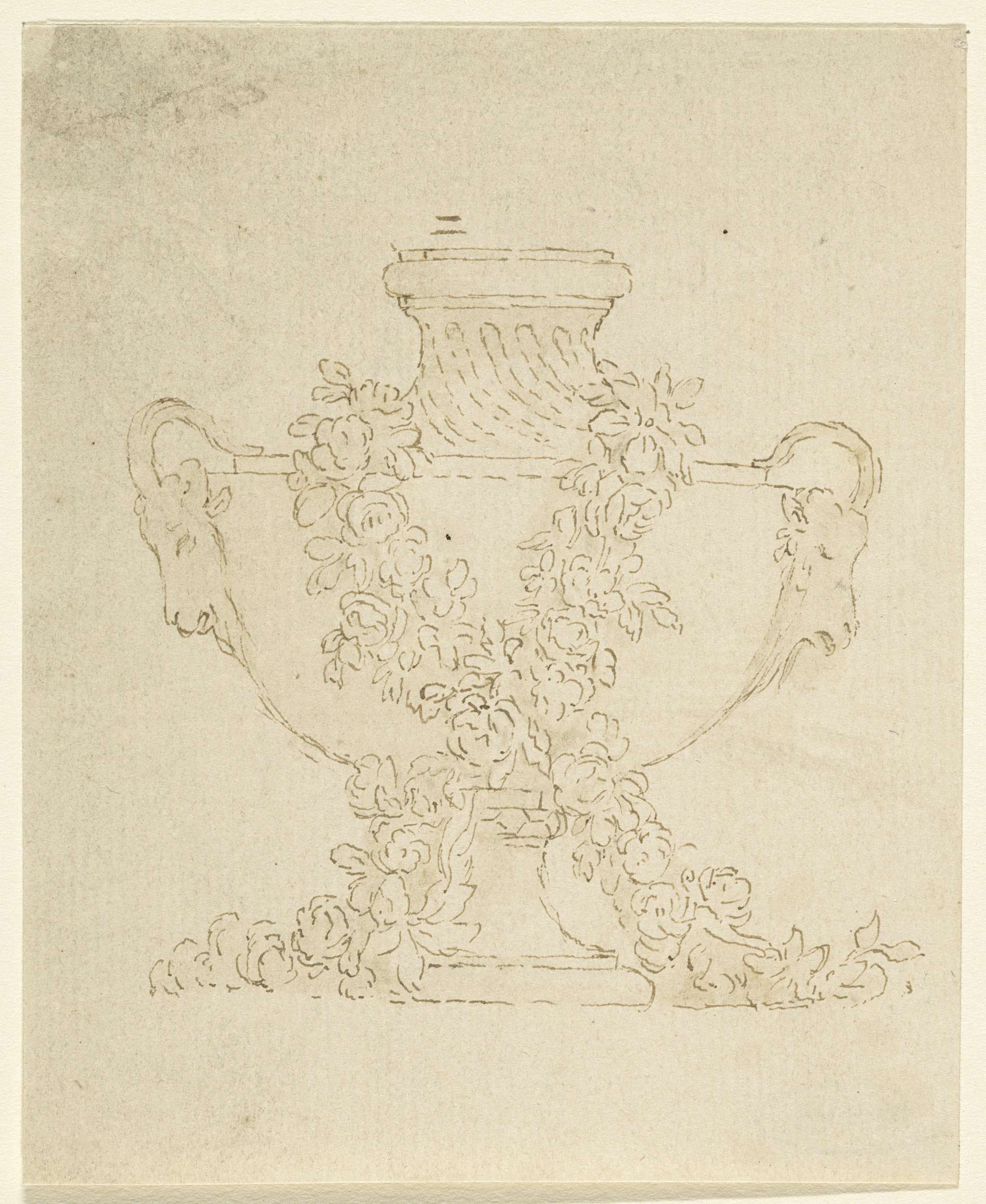 Vaas met guirlande en geitenkoppen