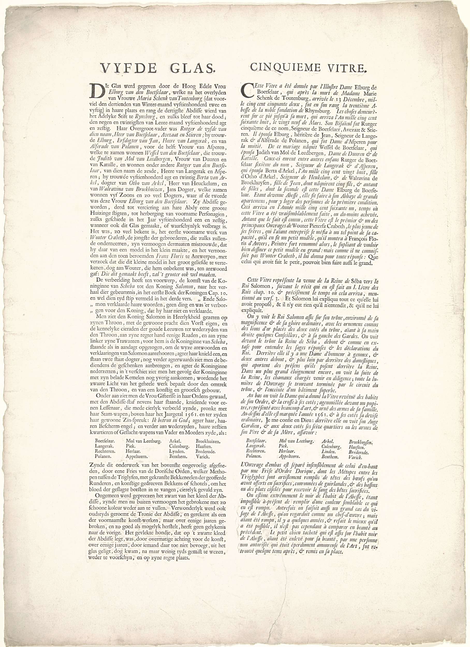 Tekstblad bij het vijfde glasraam in de Sint-Jansker...