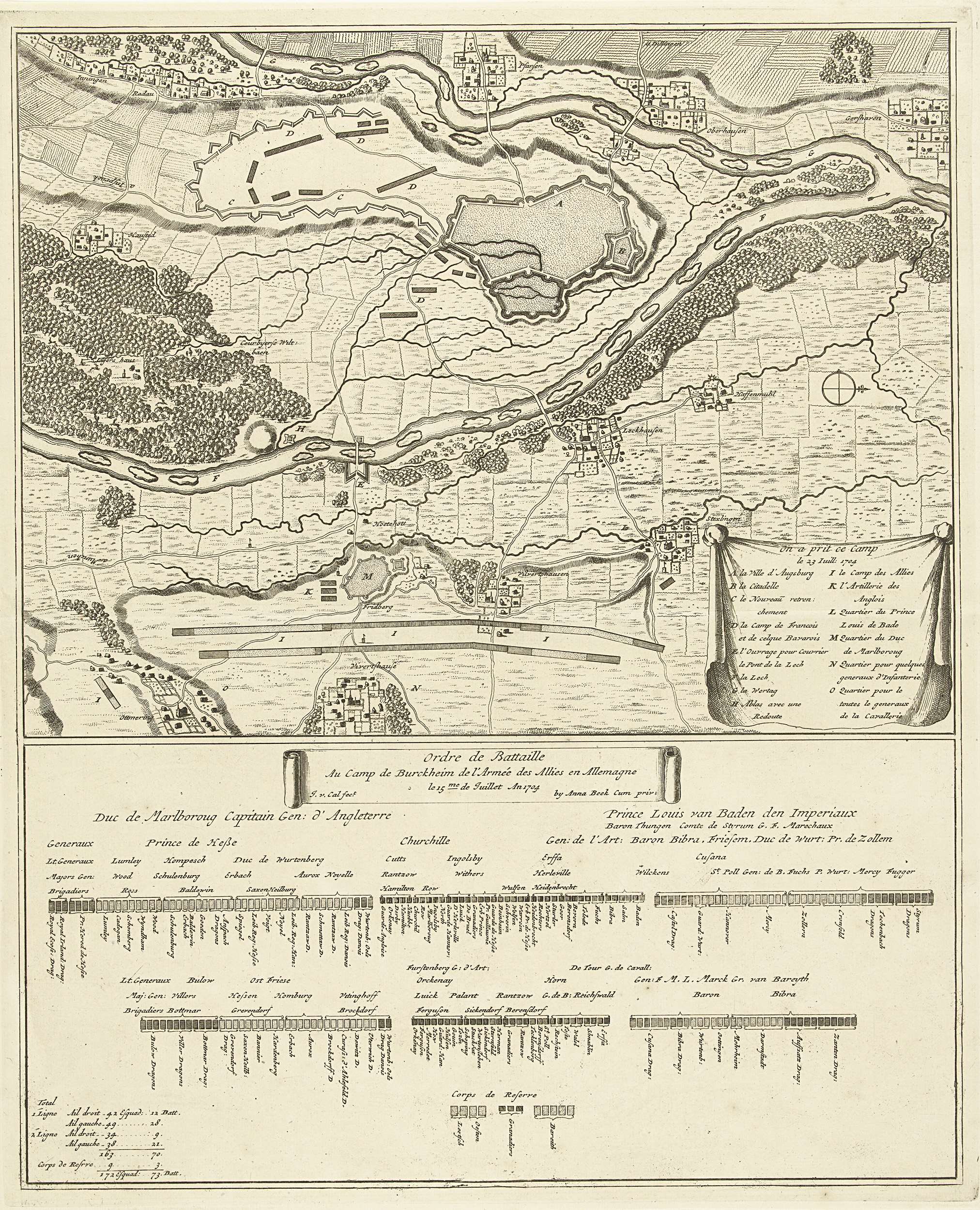 Plan van het legerkamp en de slagorde van de Geallie...