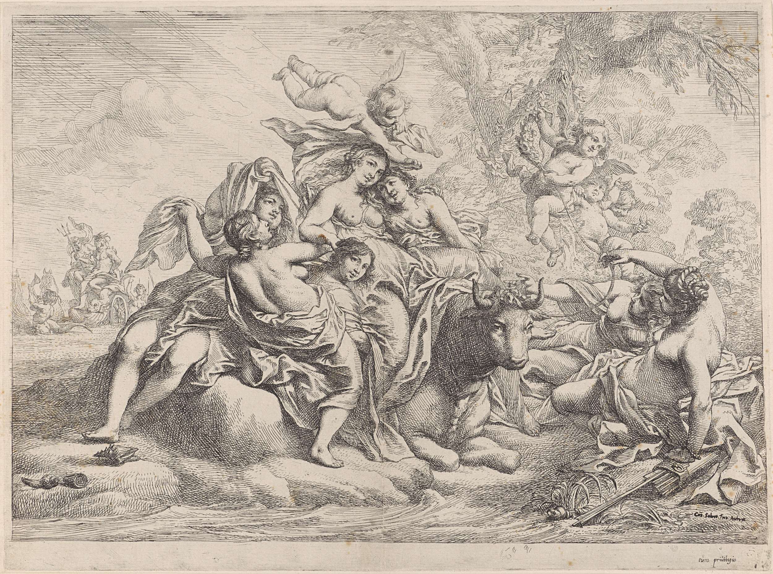 Neptunus met zijn paardenwagen op zee