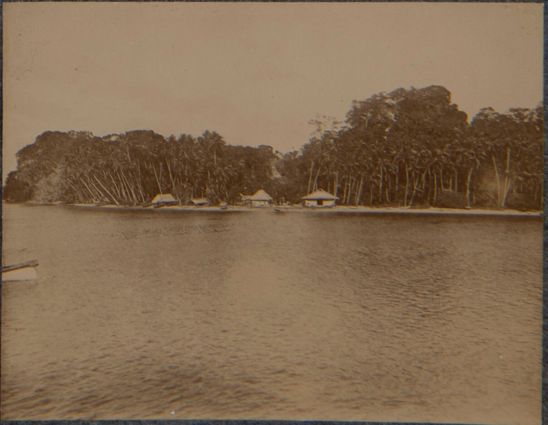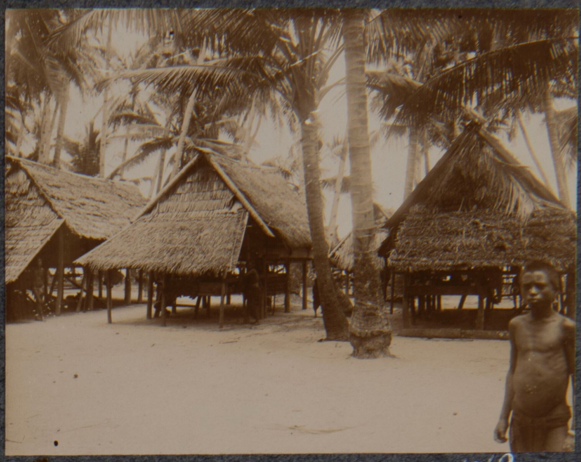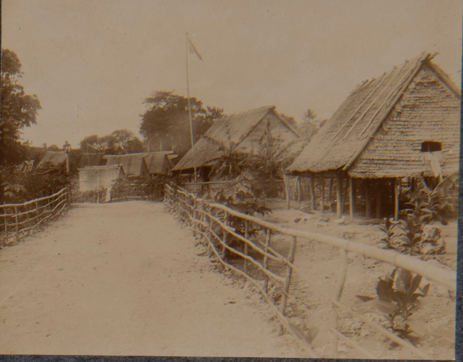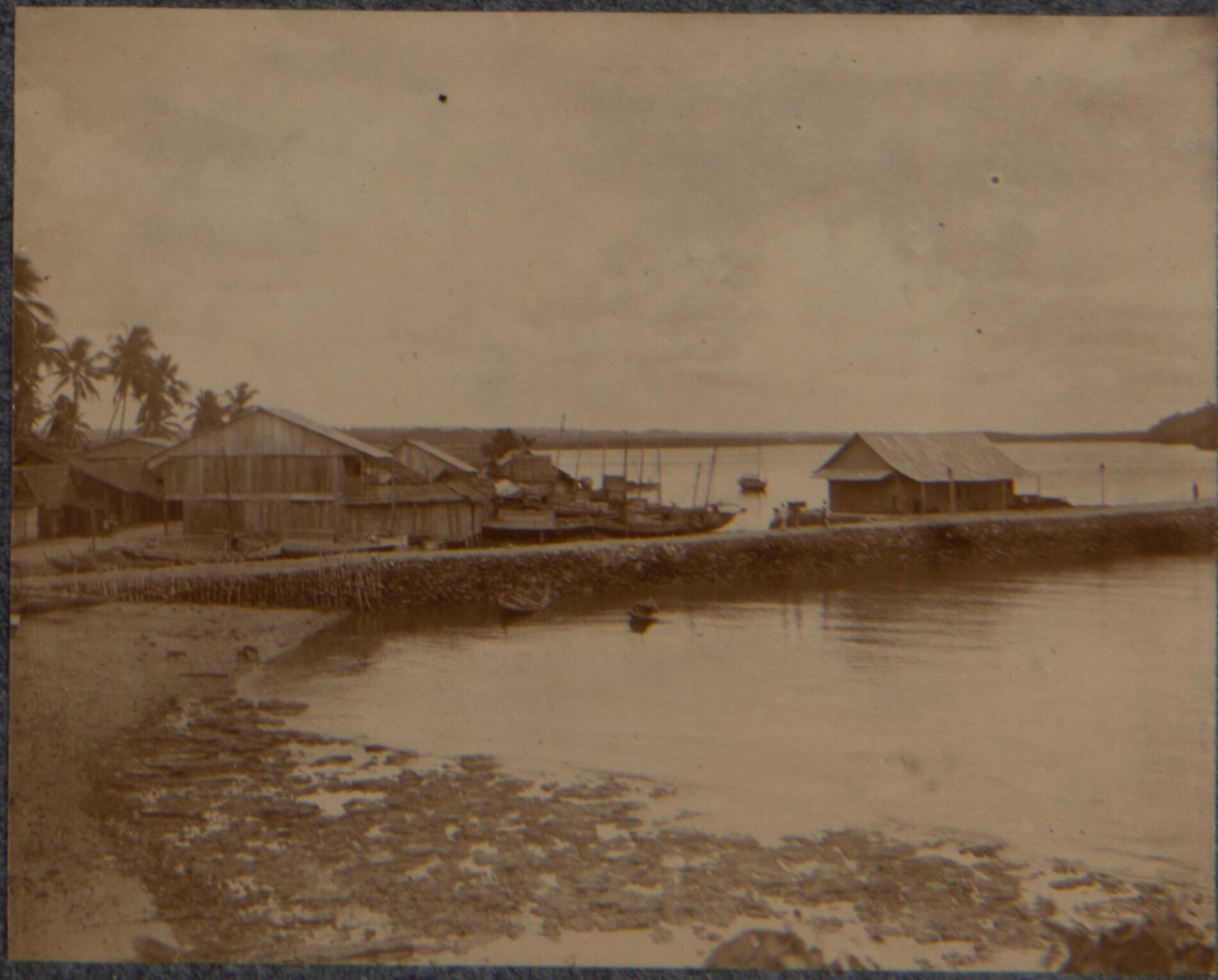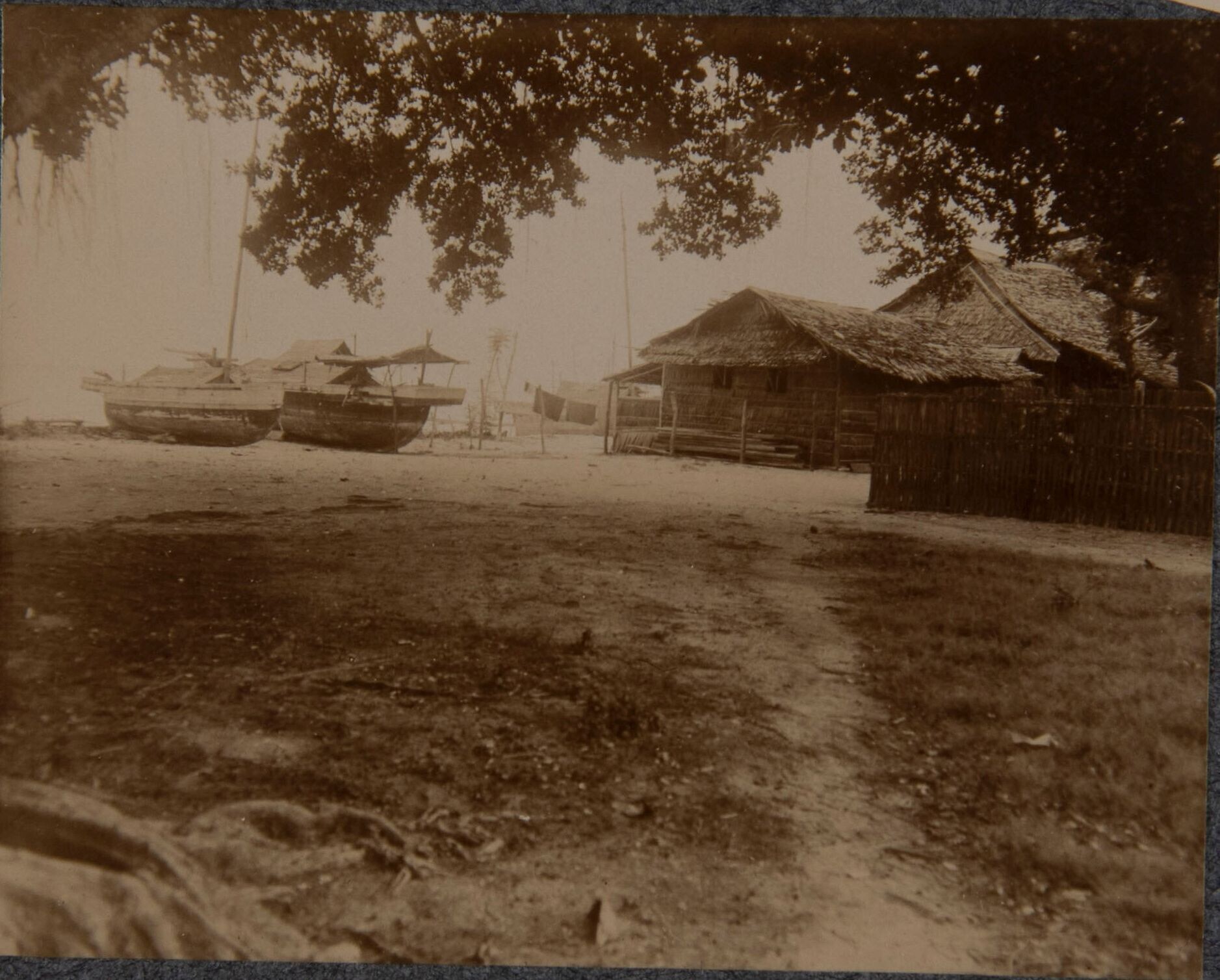 Enkele gebouwen bij aanlegsteiger op de Tanimbar-eil...