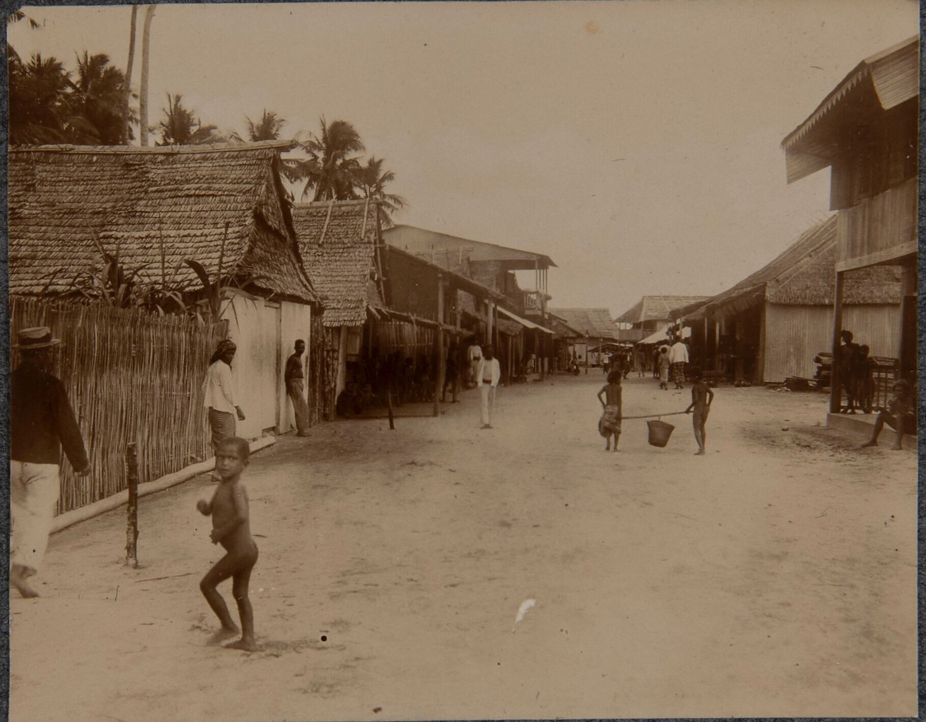 Straatbeeld met woningen op de Tanimbar-eilanden