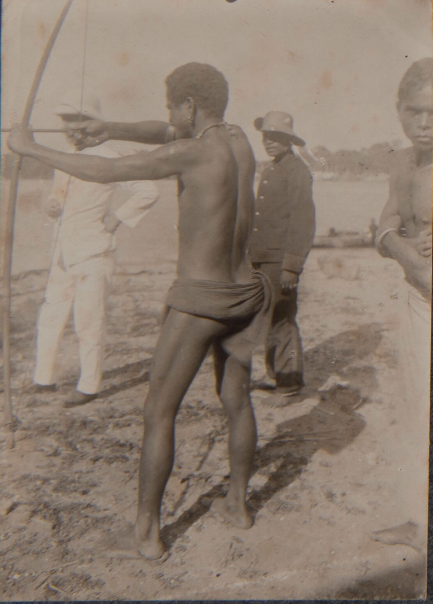 Een man van Tanimbar schiet met pijl en boog onder t...