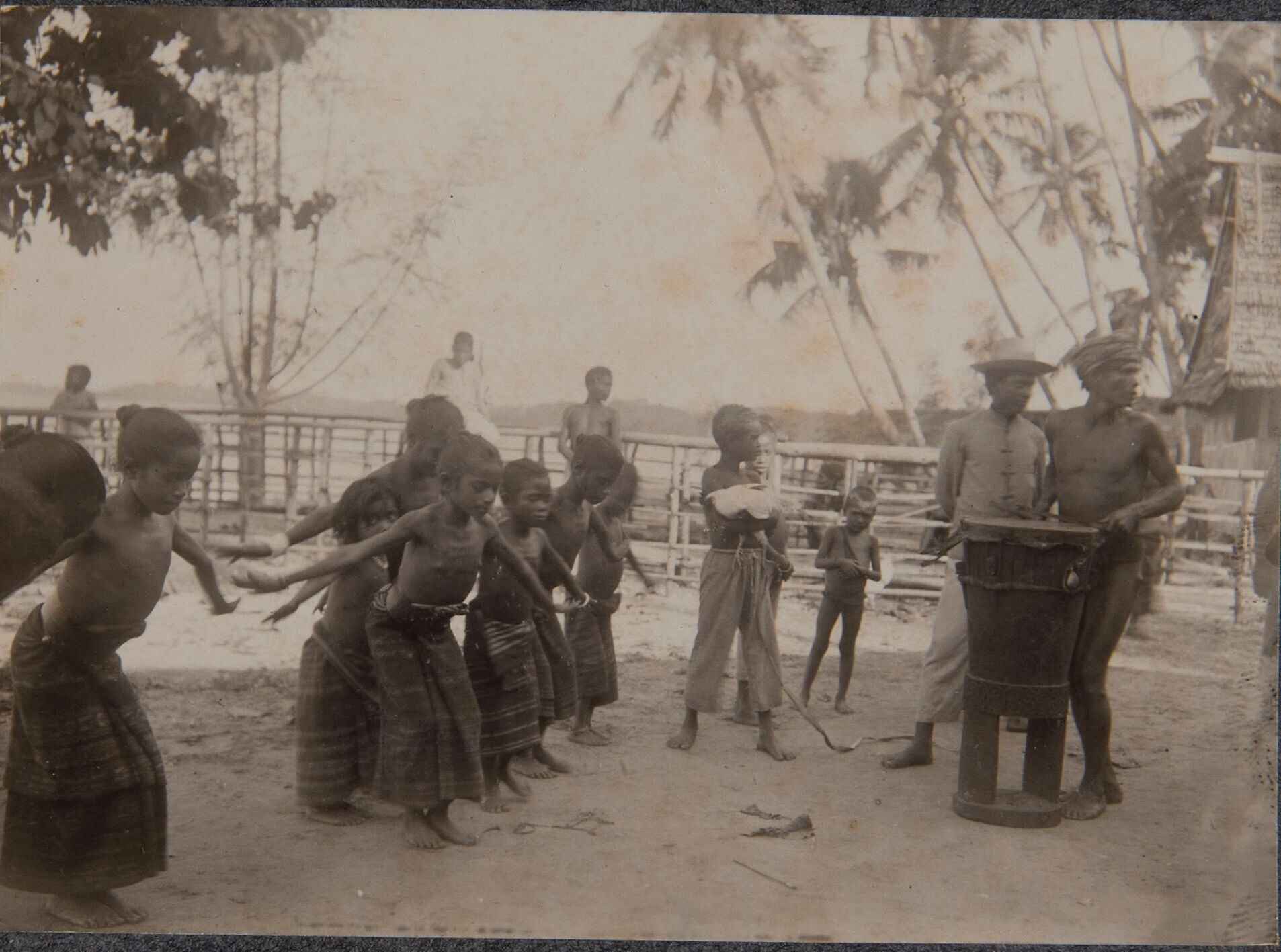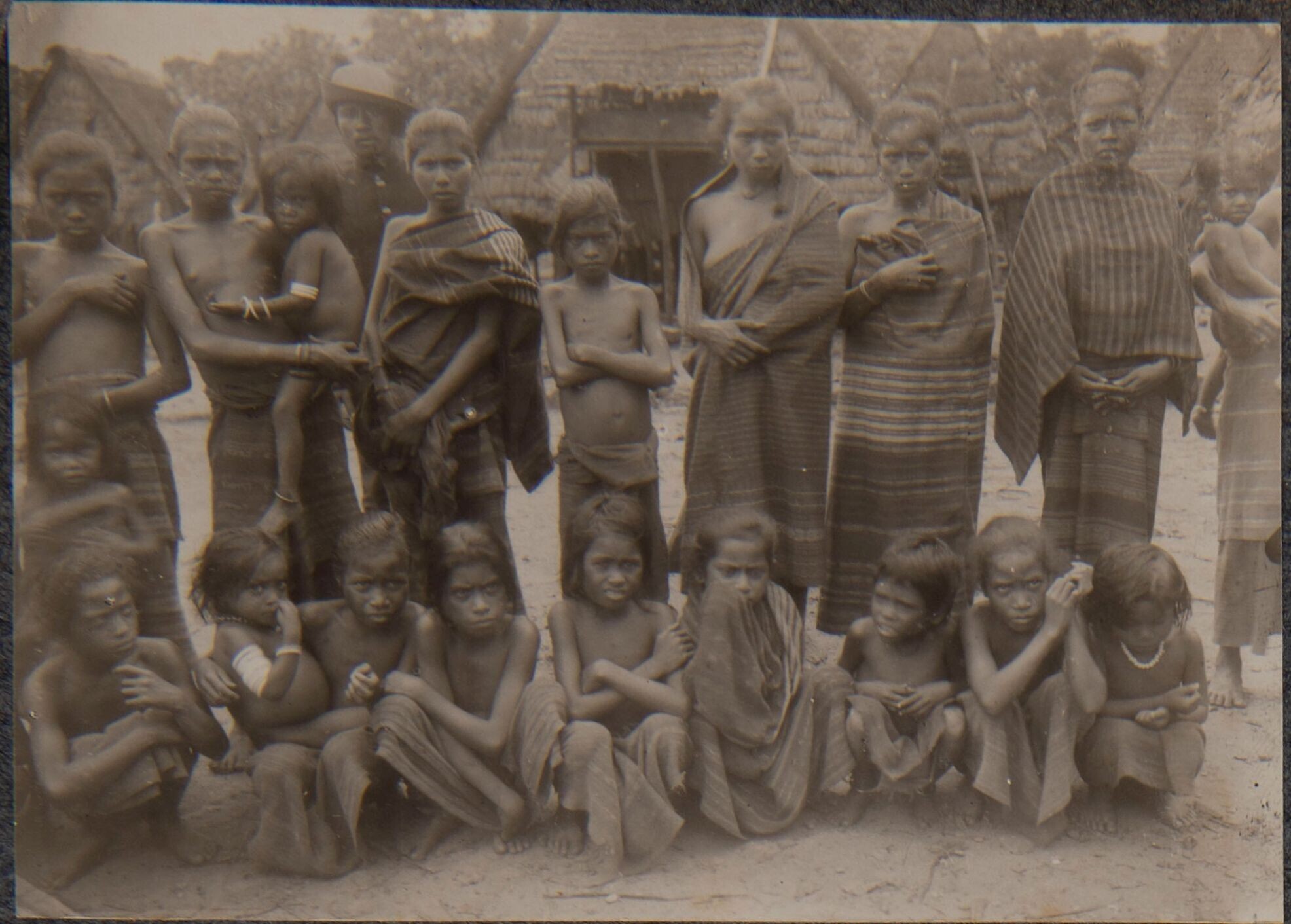 Groepsportret van vrouwen en kinderen, sommigen drag...