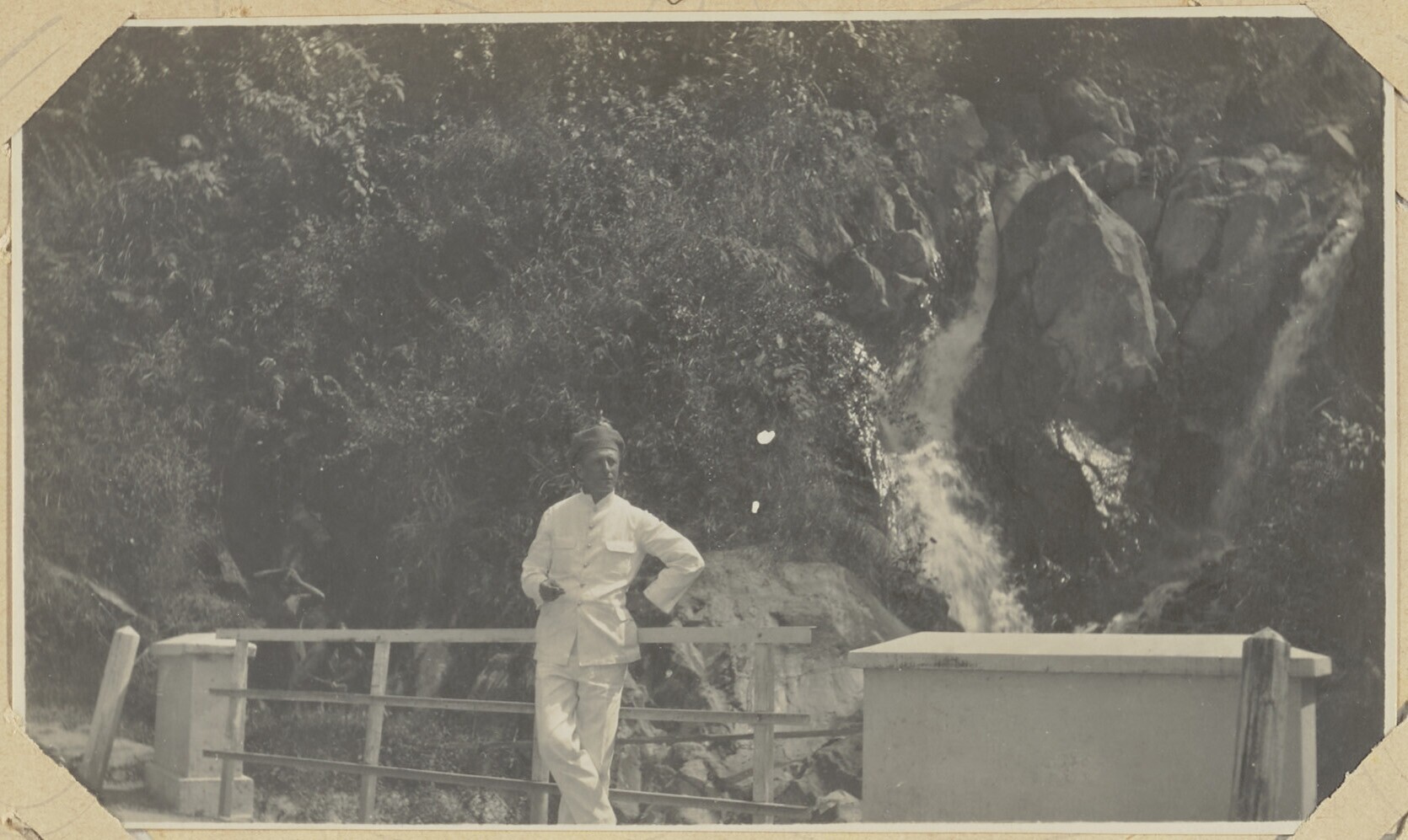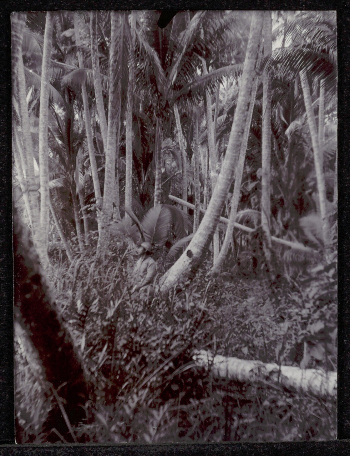 Man in een tuin met kokospalmen bij Wendoe (?) op Ni...