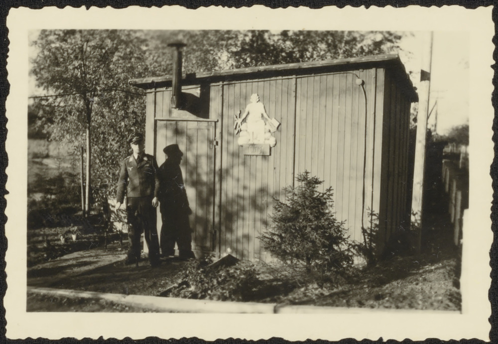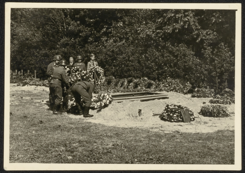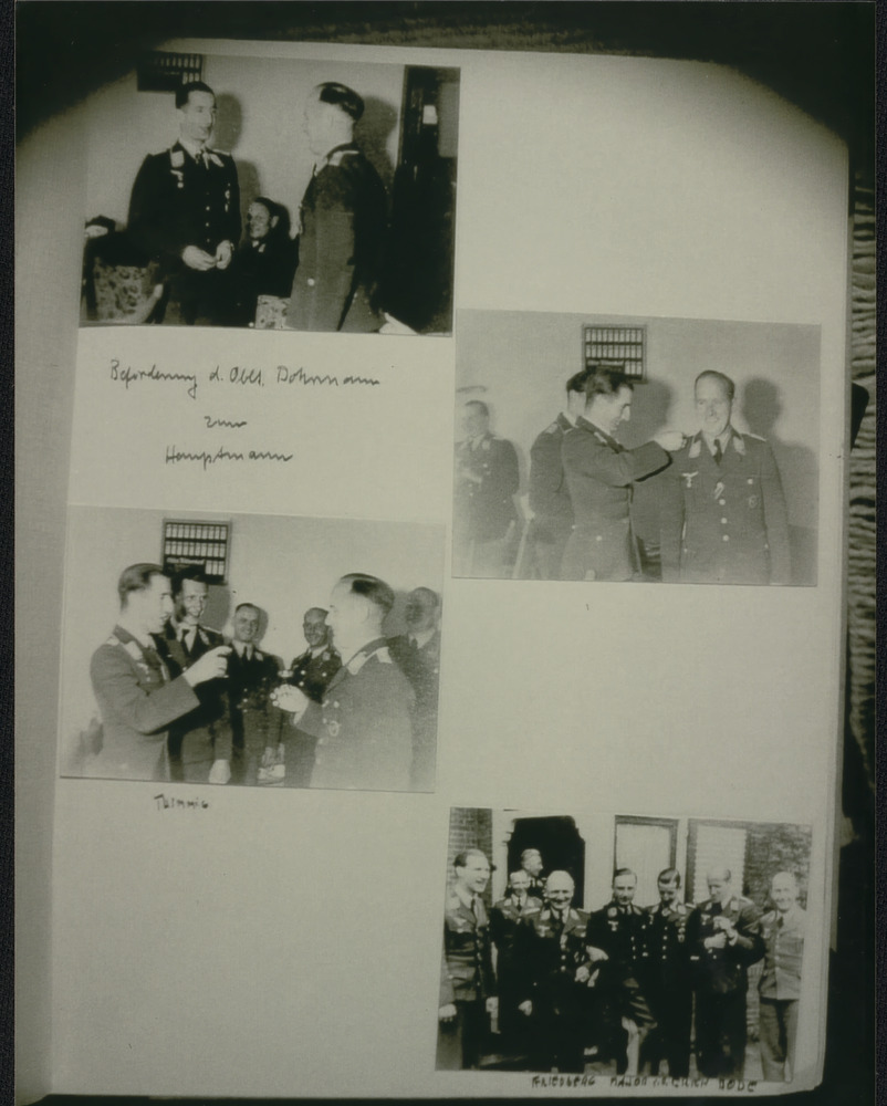 Groepsfoto van Luftwaffe militairen met hond bij een...