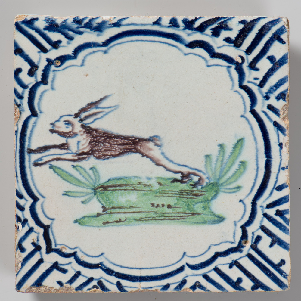 tegel van keramiek met tinglazuur, voorstellende: or...