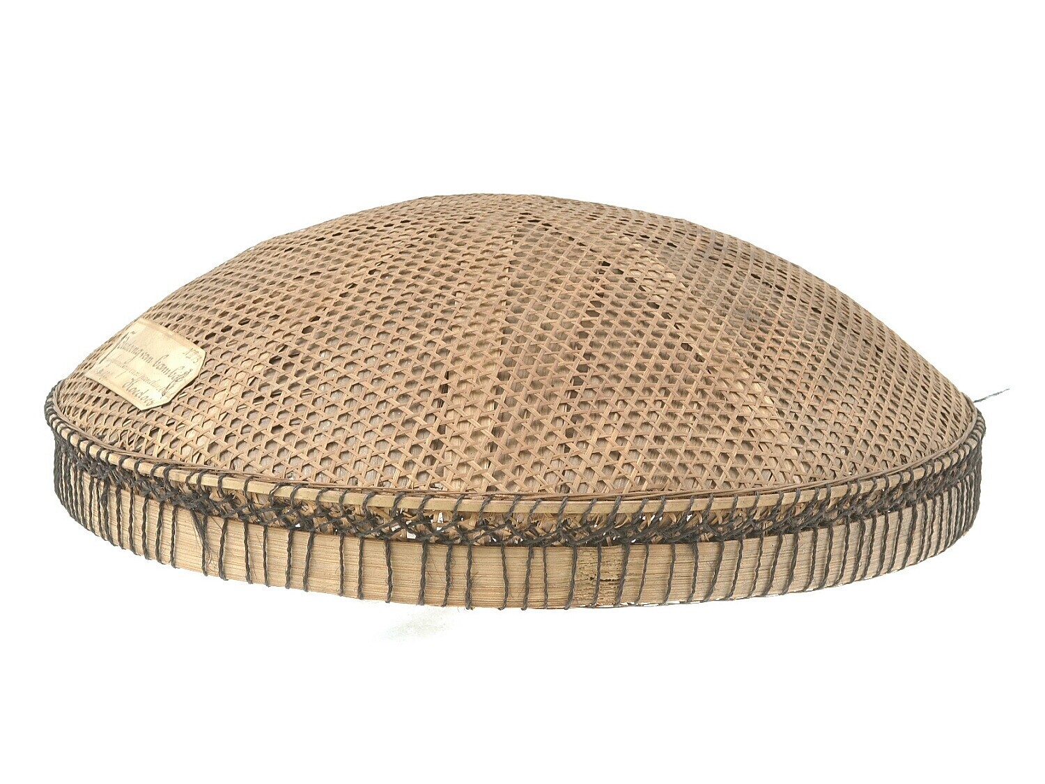 Gevlochten hoed van bamboe en linnen