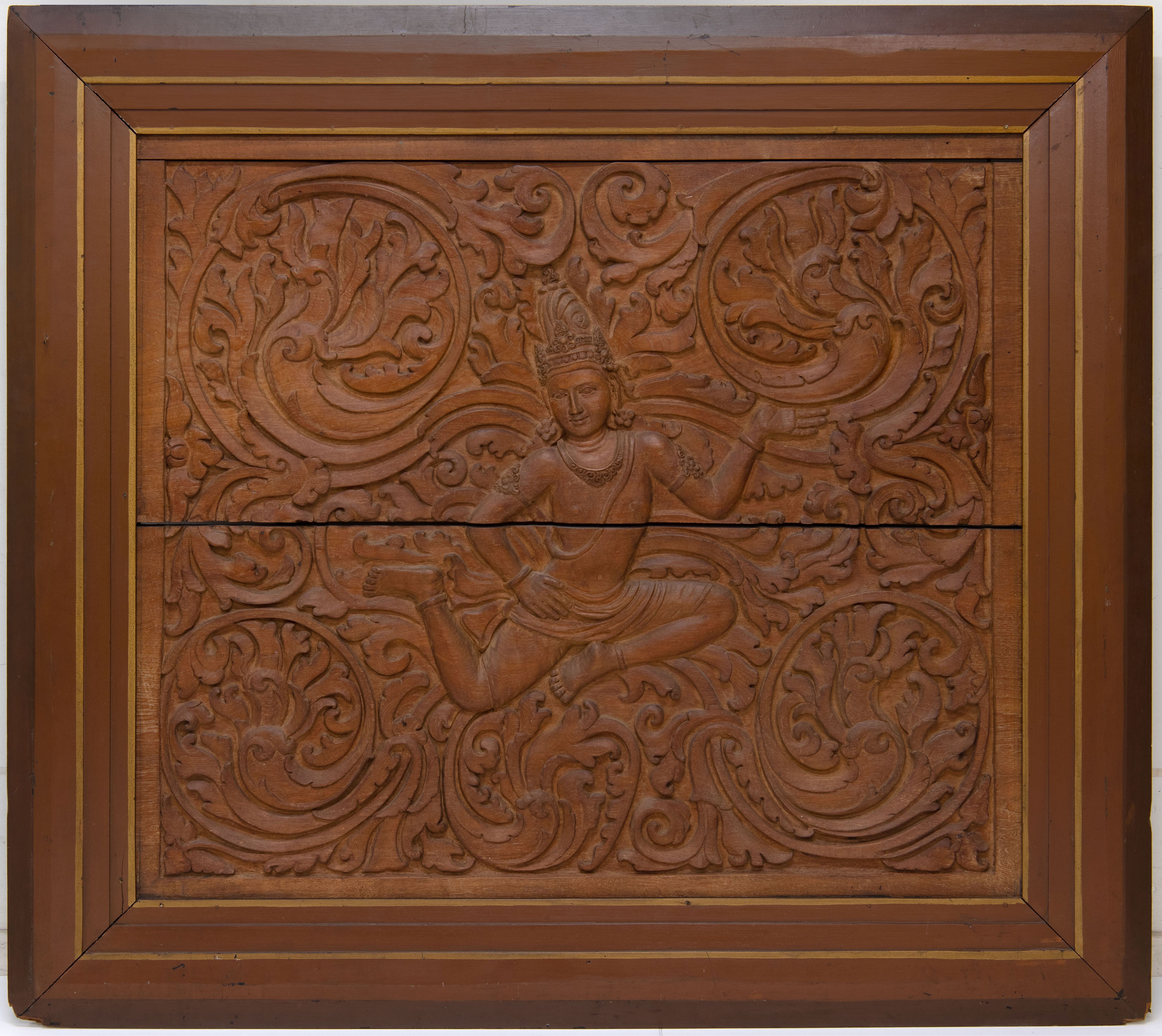 Houten plank met vermoedelijk een bodhisattva geïnsp...