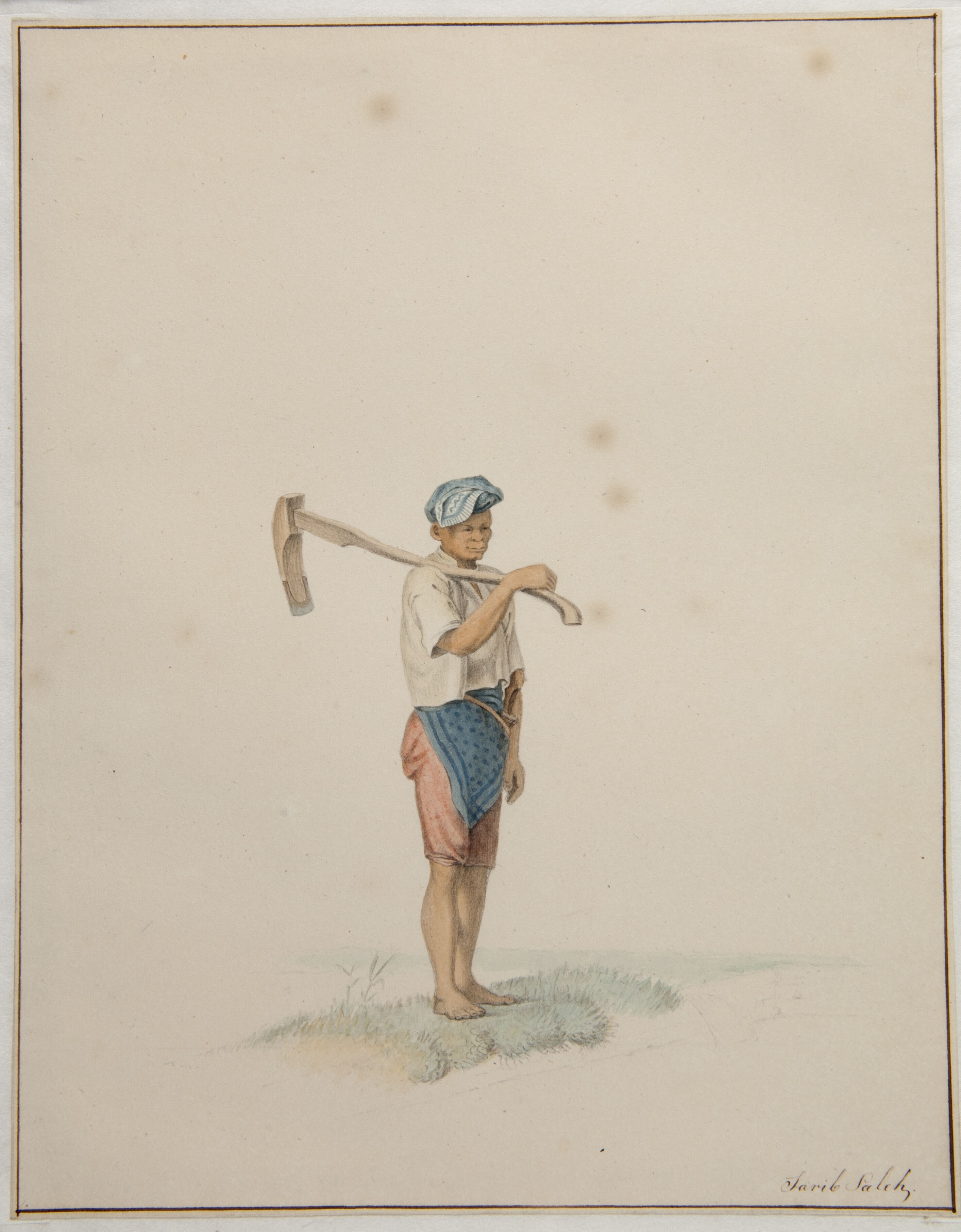 Aquarel by Raden Saleh depicting a man with a sickle...