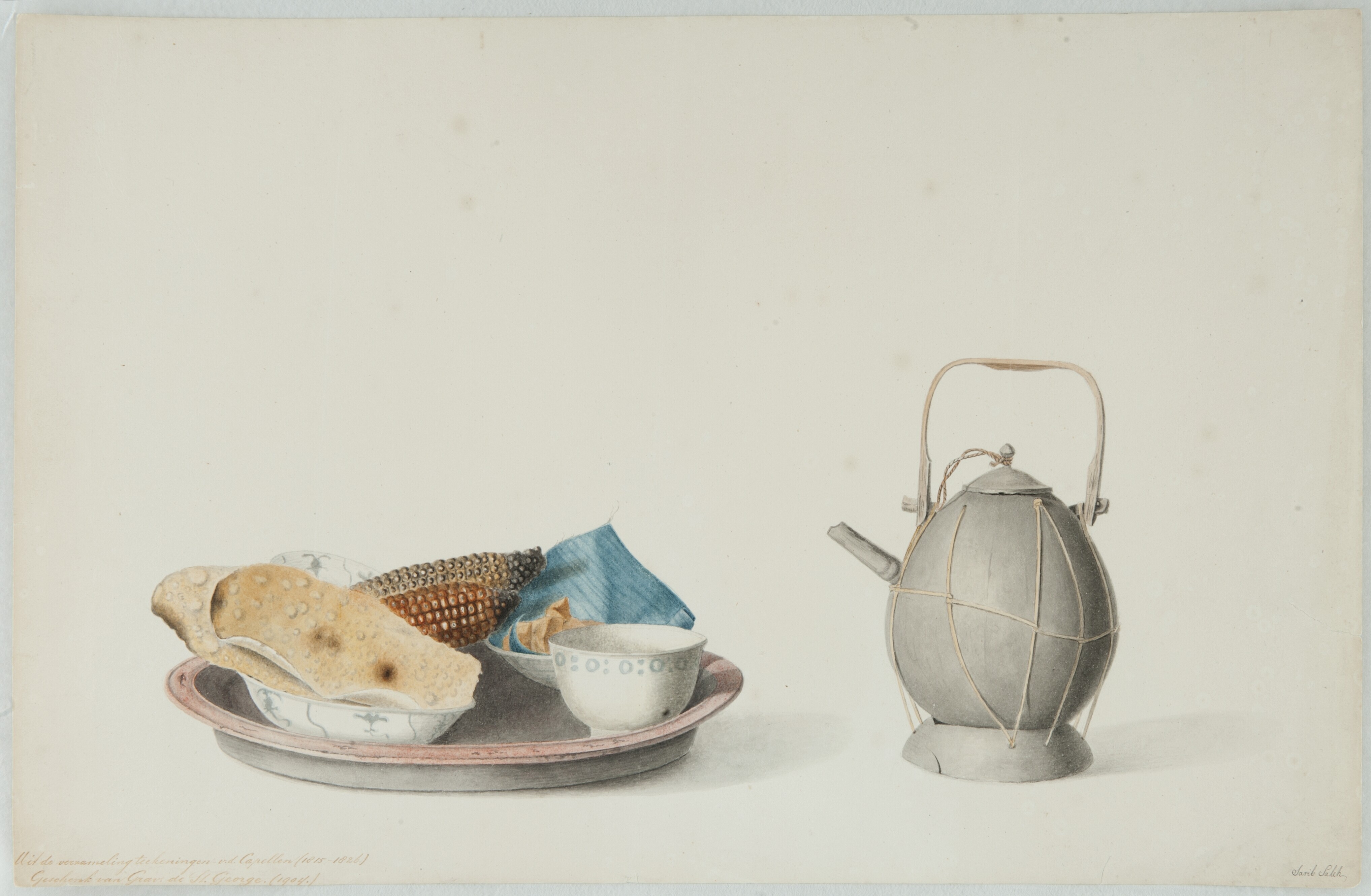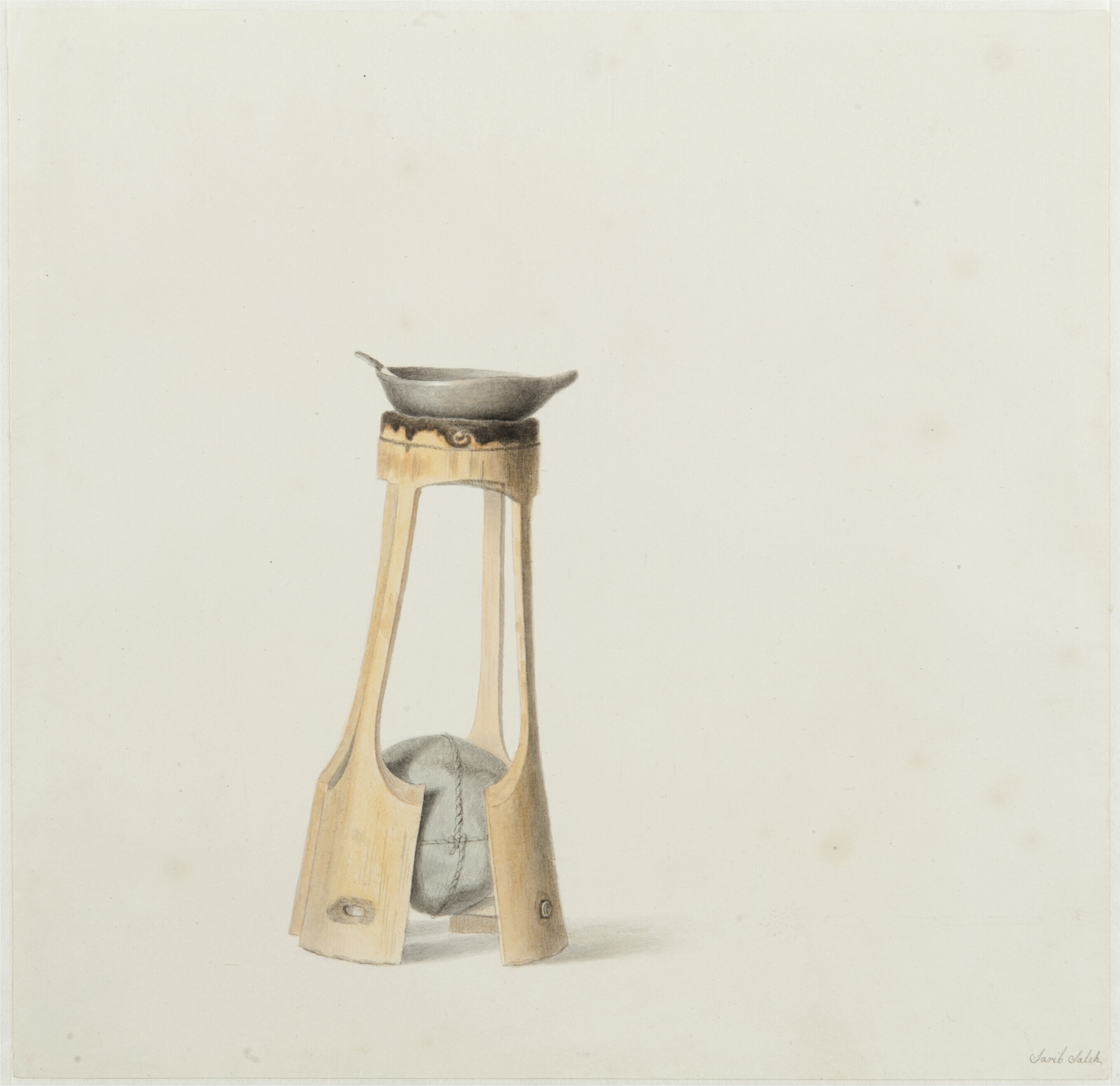 Aquarel by Raden Saleh depicting an oil lamp