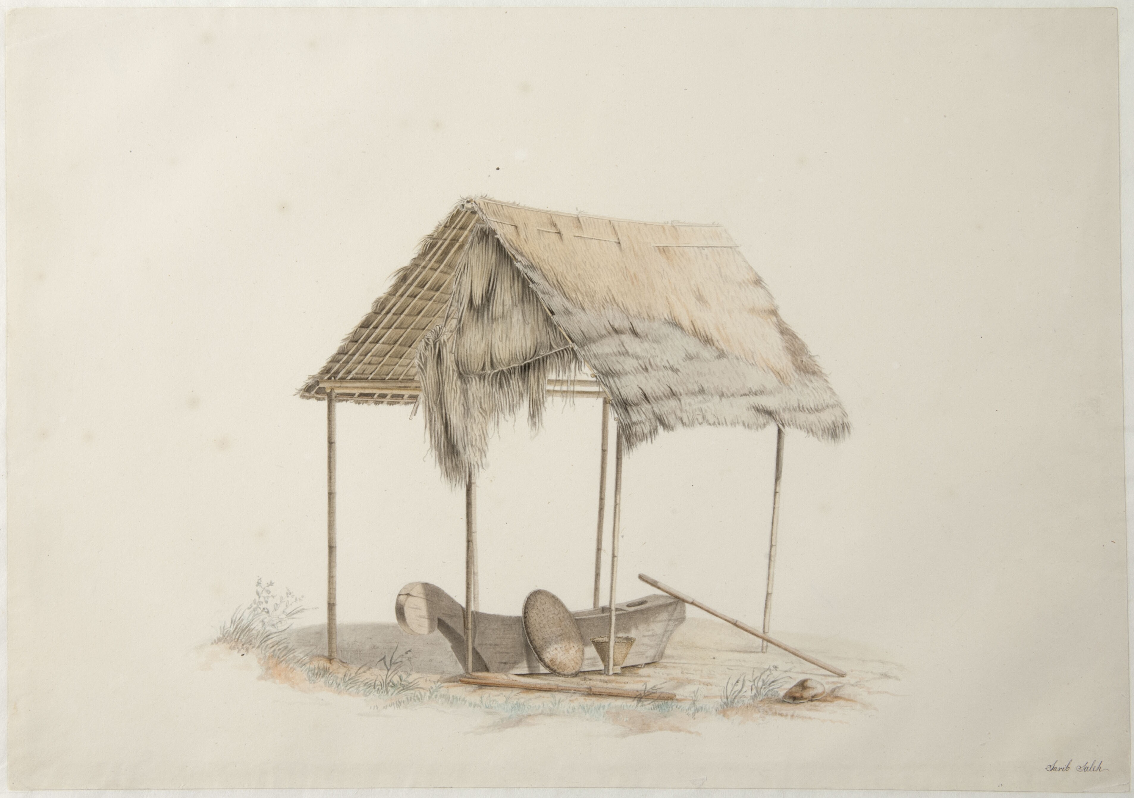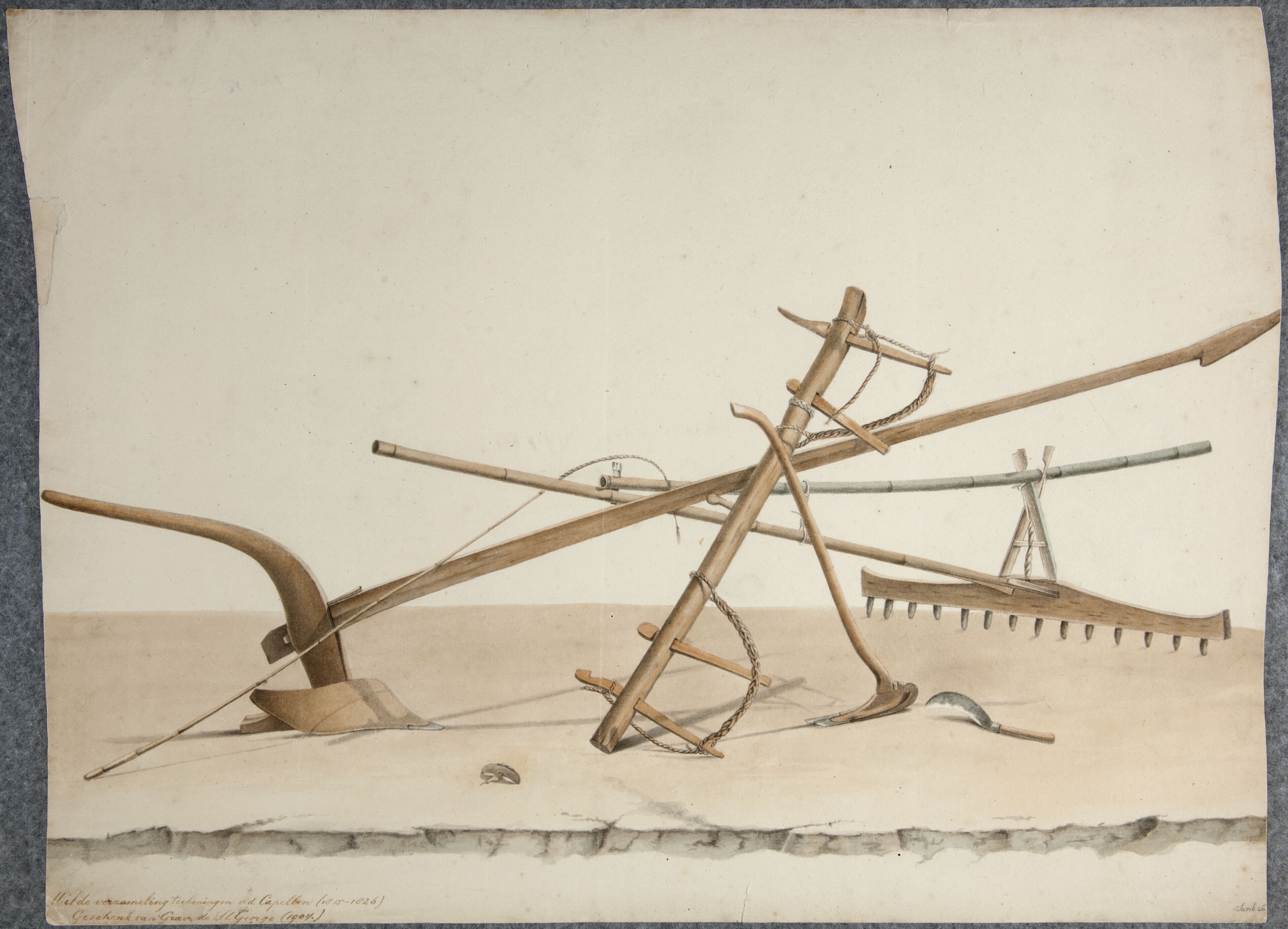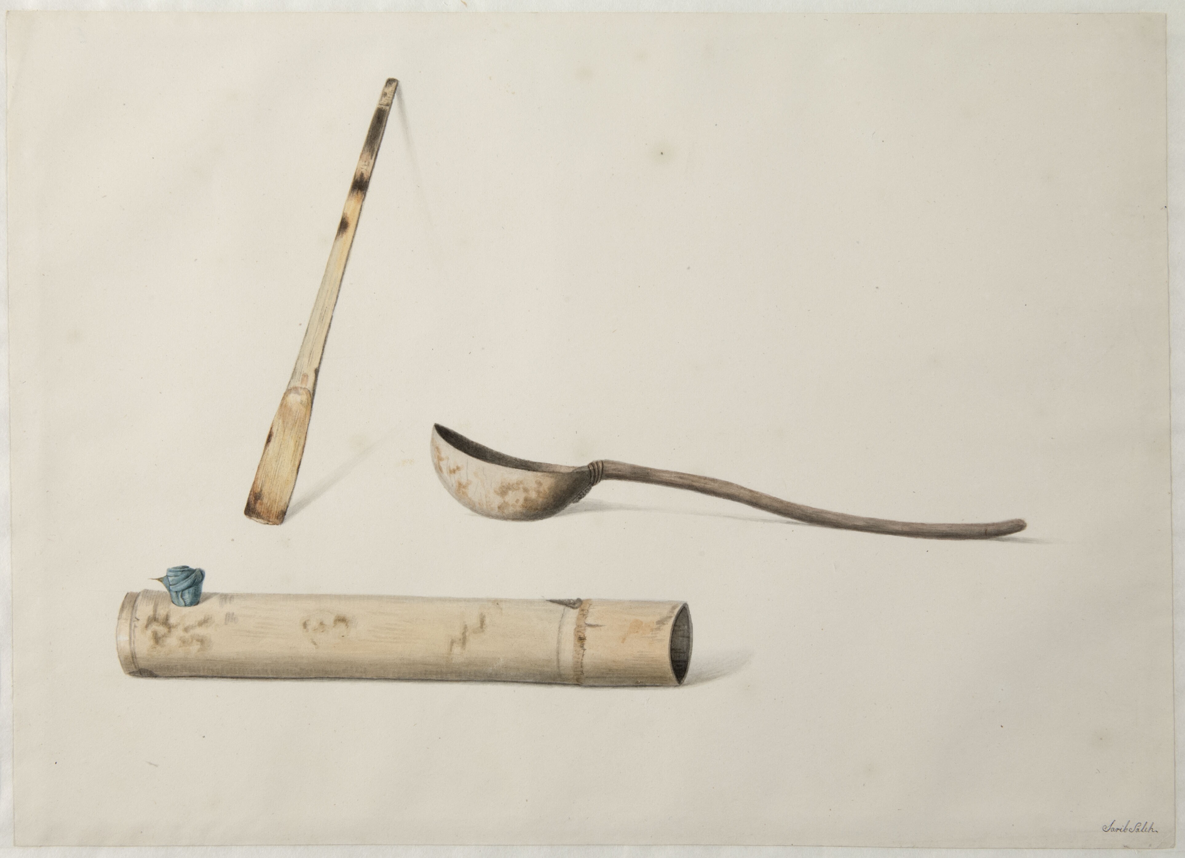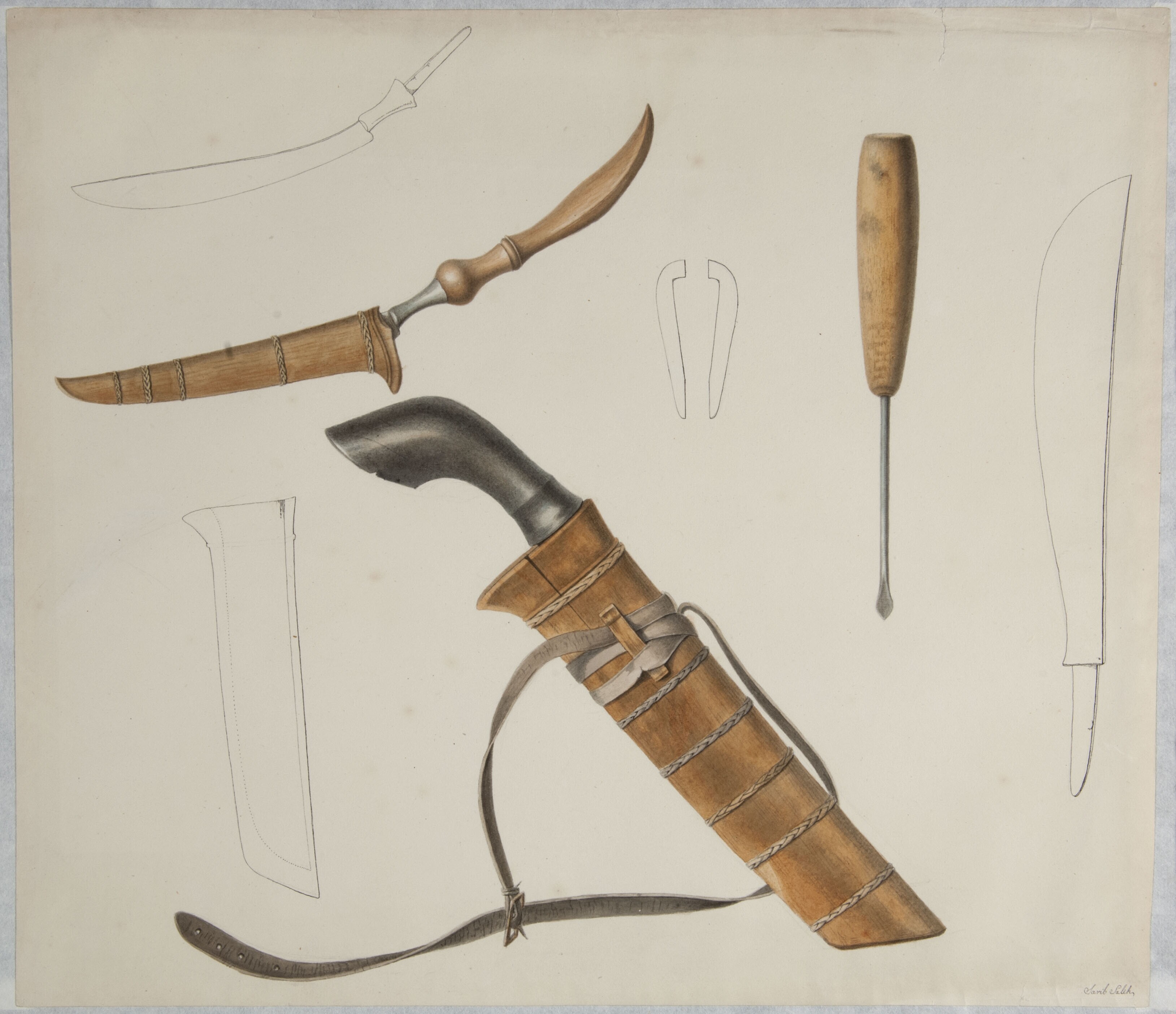 Aquarel by Raden Saleh depicting a knife and sickle