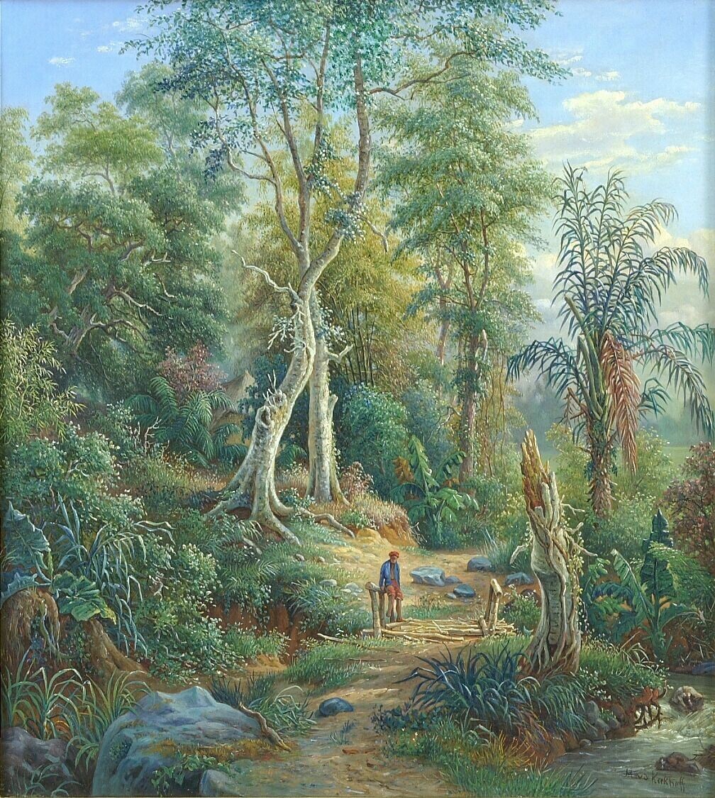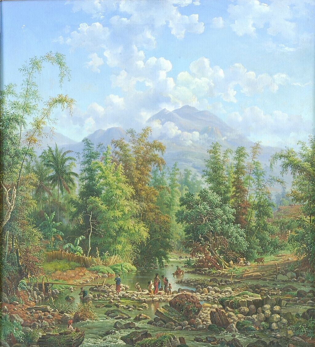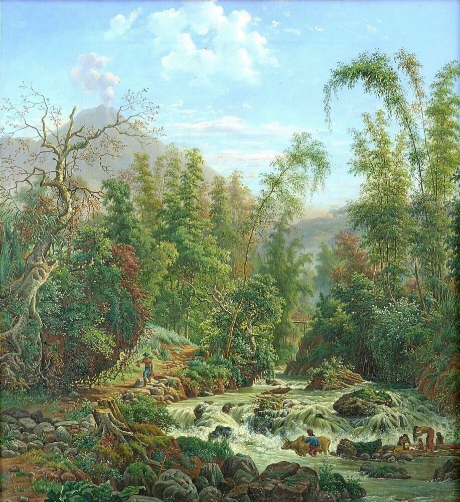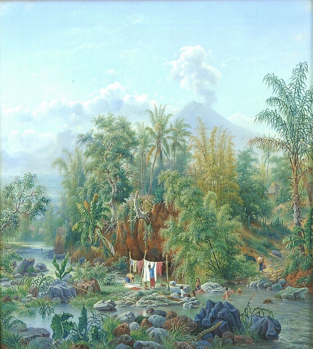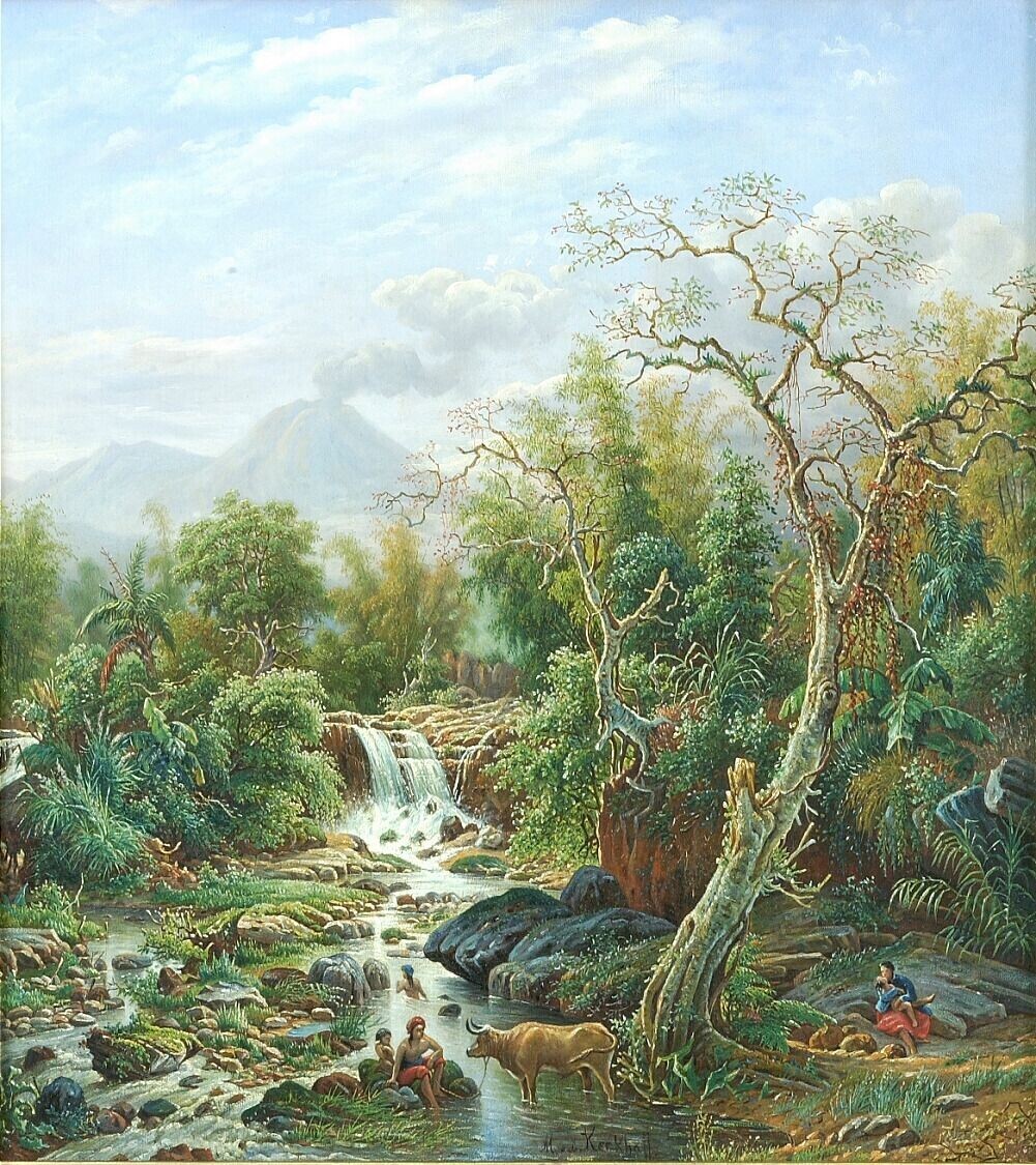 Aquarel by Raden Saleh depicting a coconut crater