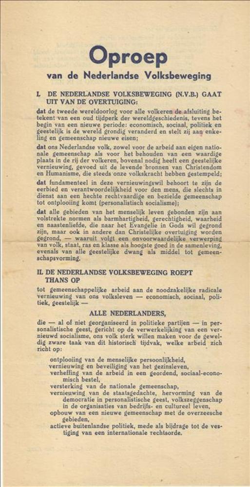Oproep, van de Nederlandse Volksbeweging