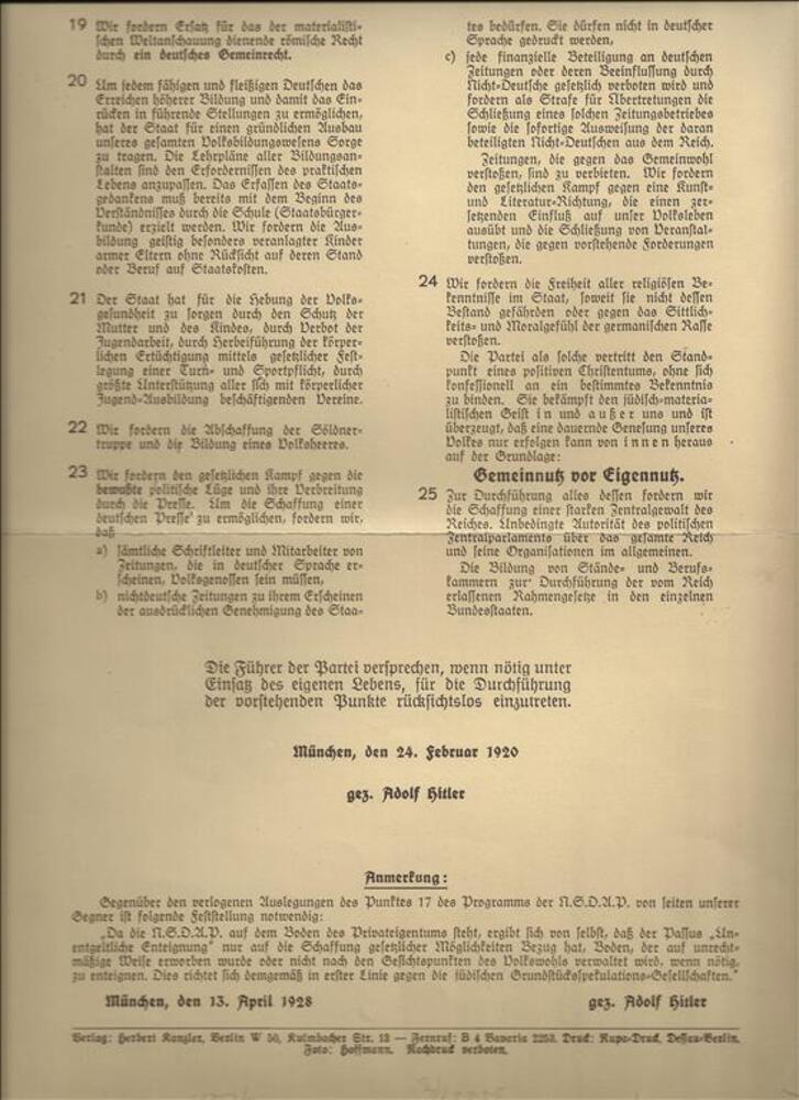 'Programm der National Sozialistichen Deutschen Arbe...
