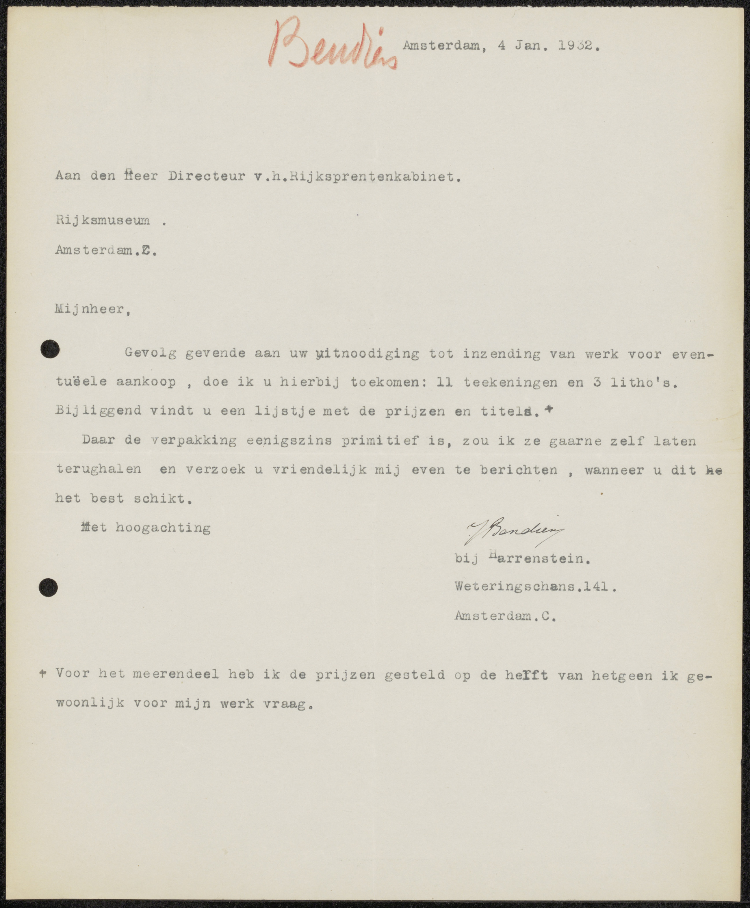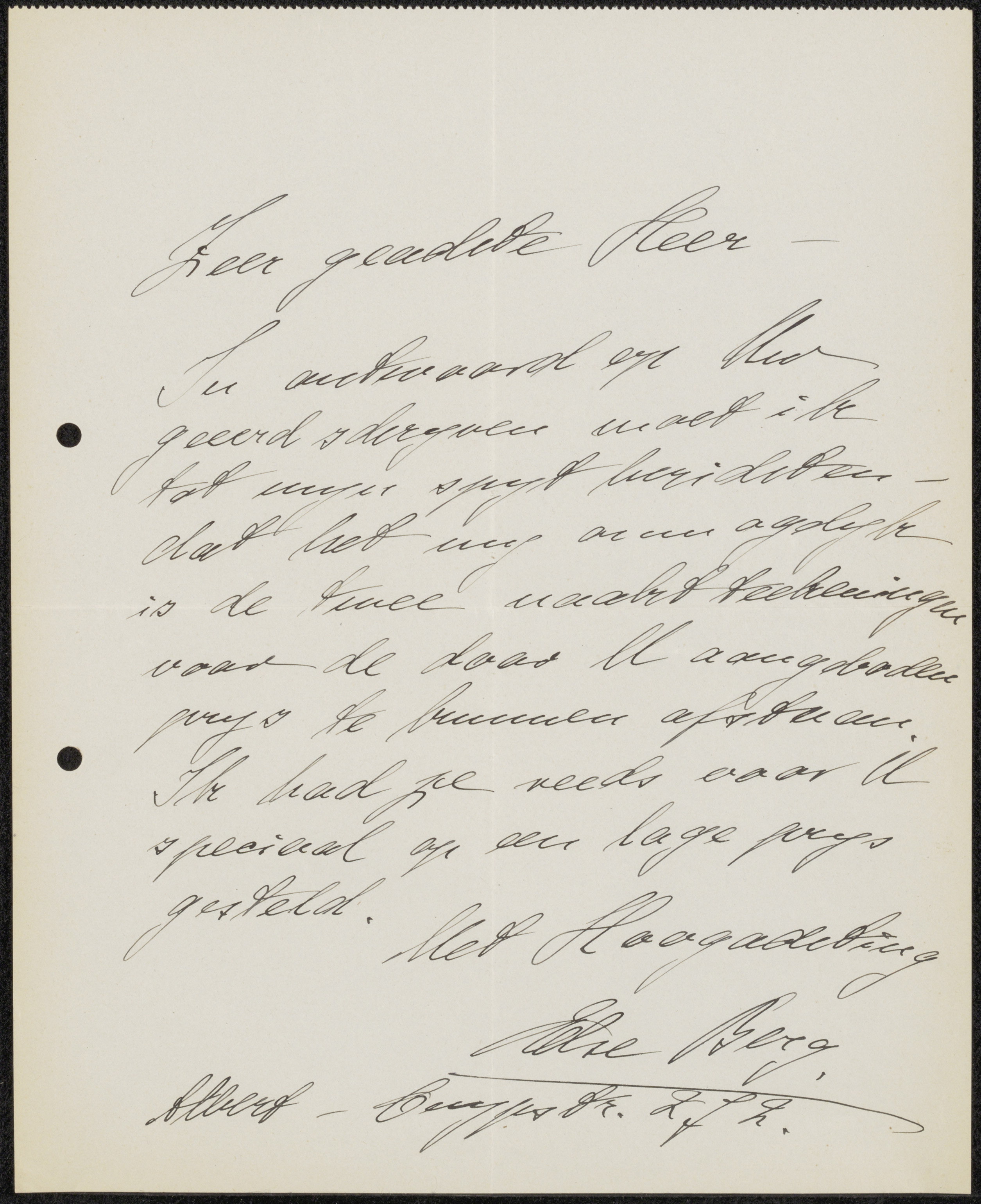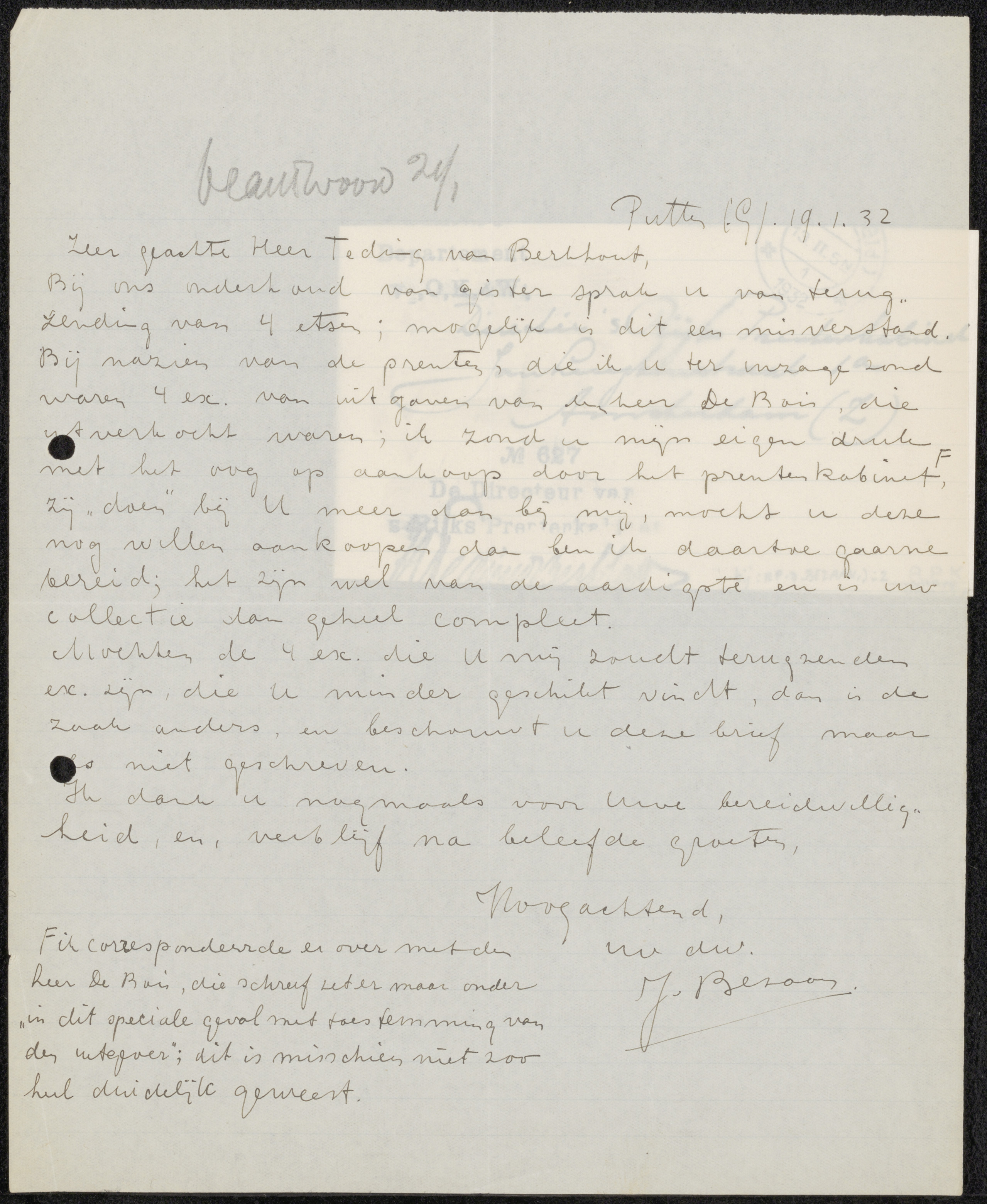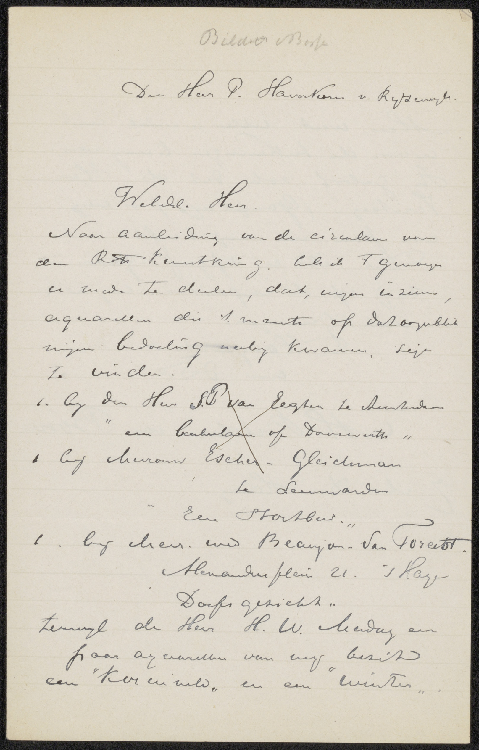 Brief aan jonkheer Hendrik Teding van Berkhout (1879...