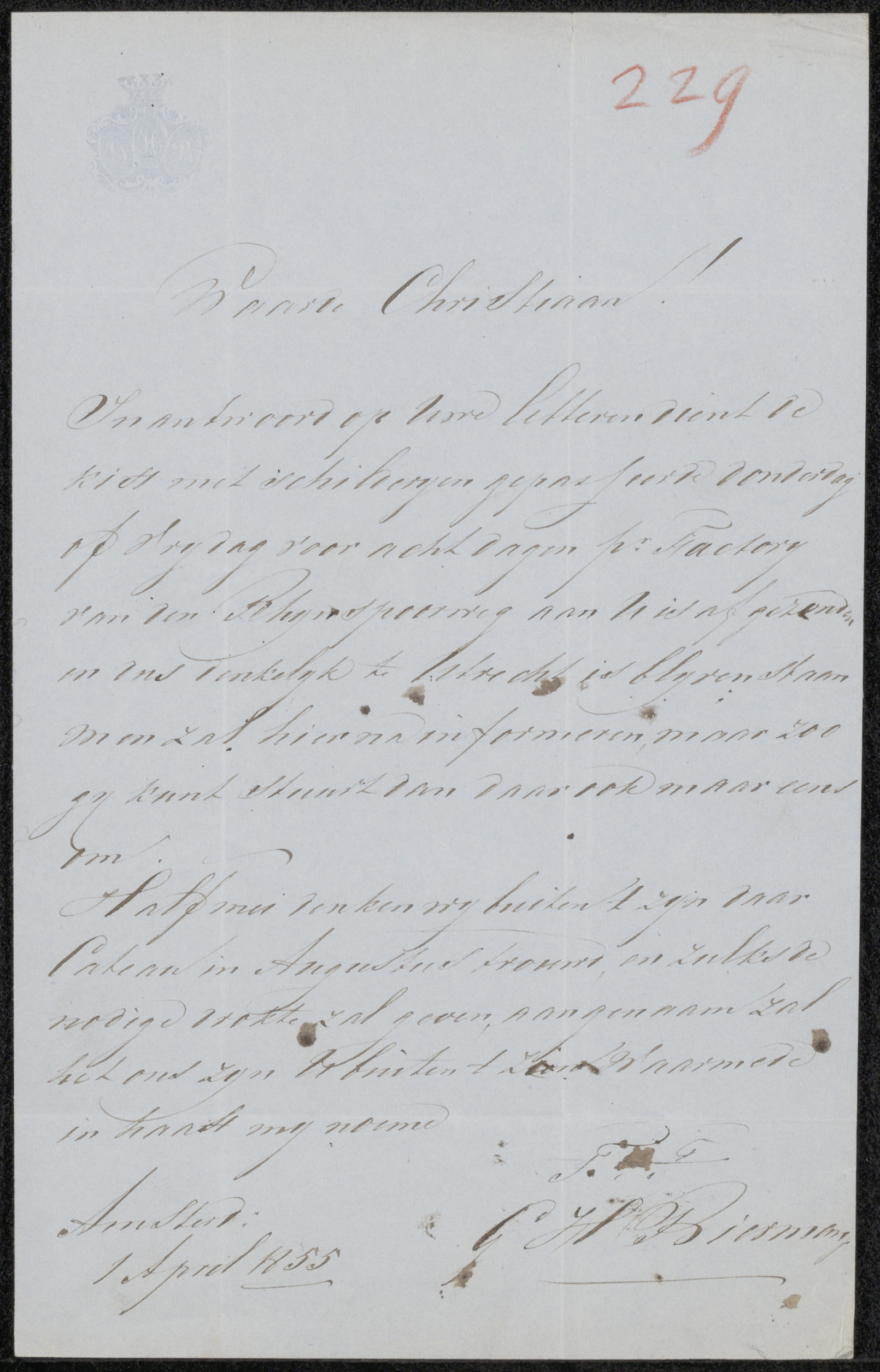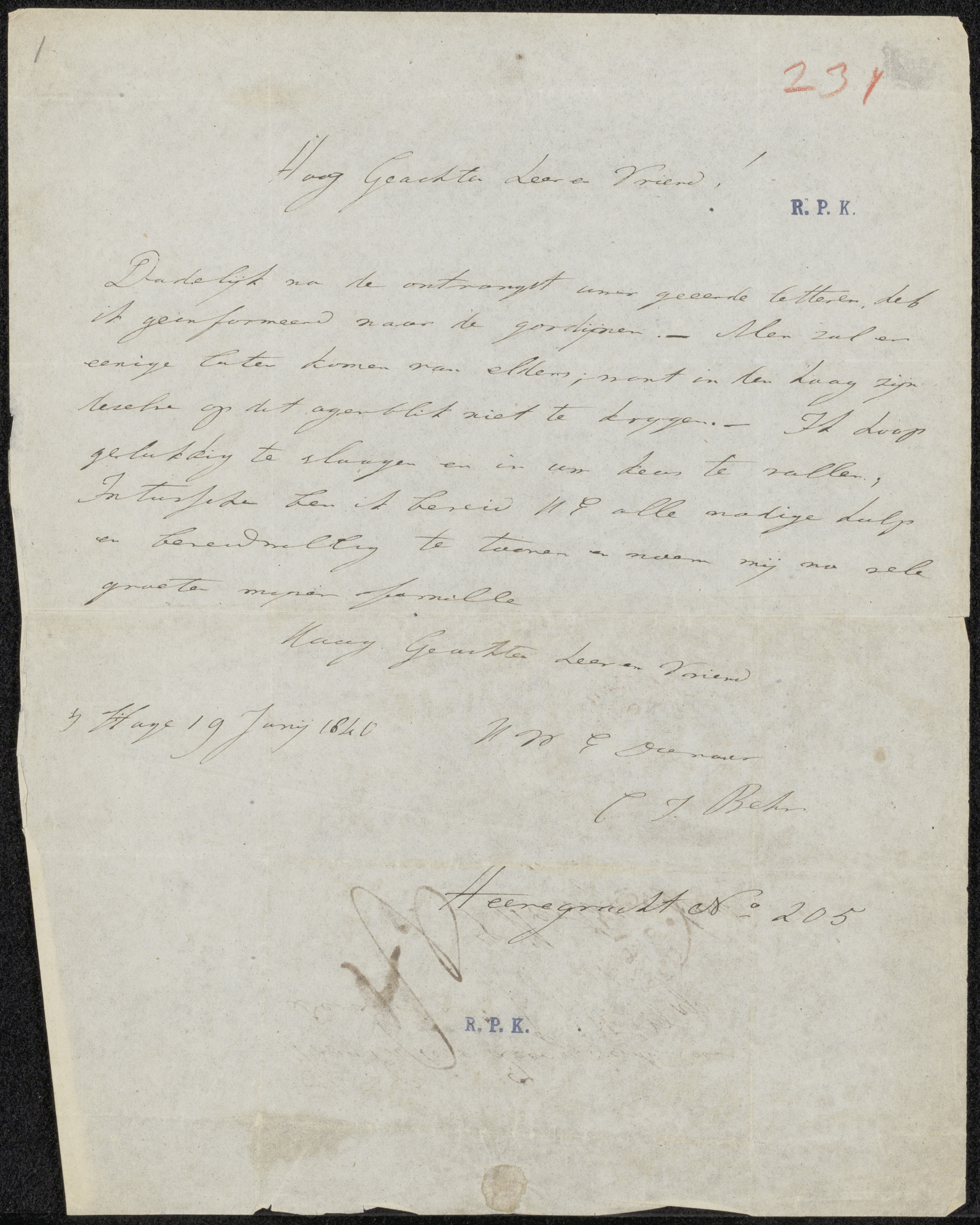 Brief aan Lodewijk Constantijn Rabo Copes van Catten...