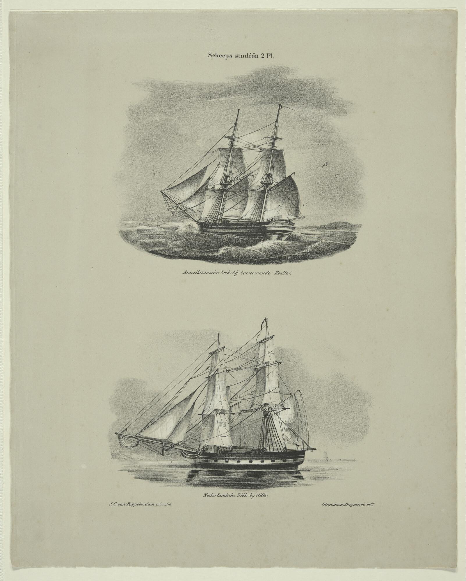 Een Amerikaanse brik en een Nederlandse brik bij stilte