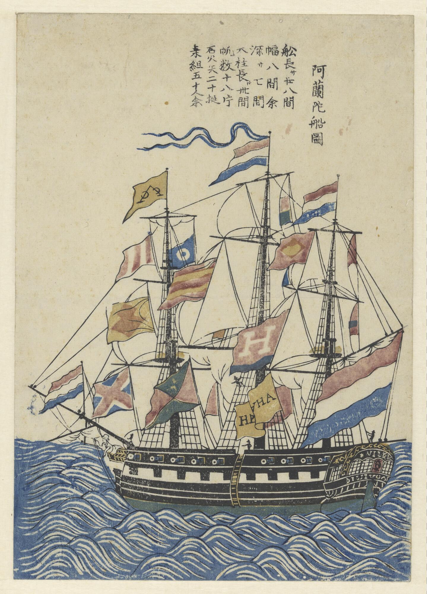 Nagasaki-prent: een gepavoiseerd driemastschip