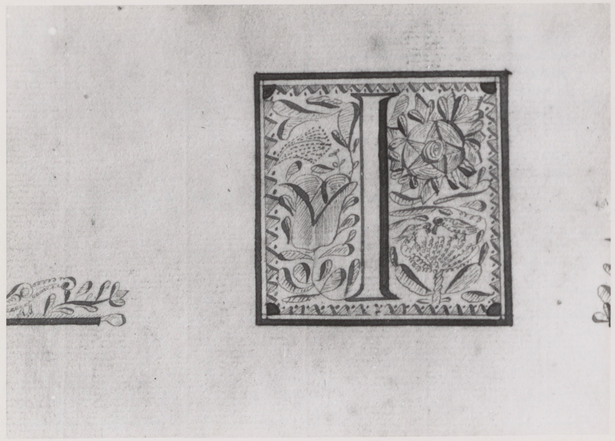 Initiaal op aquarel, Marken, 1943 (zwart-wit foto)