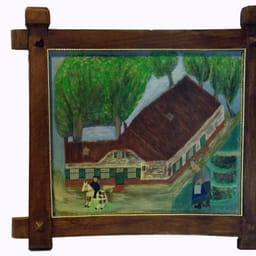 'Landschap met boerderij in vogelvlucht, op de voorg...