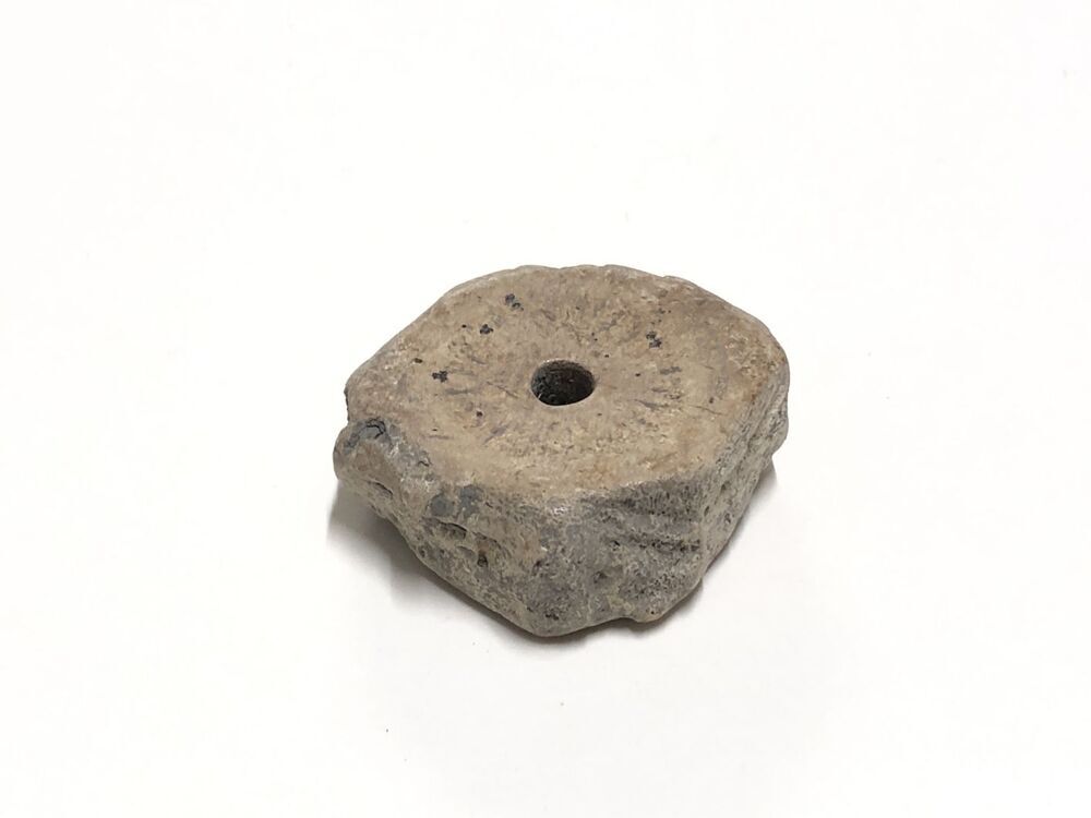 Ronde, naar de punt spits toelopende speelsteen van ...