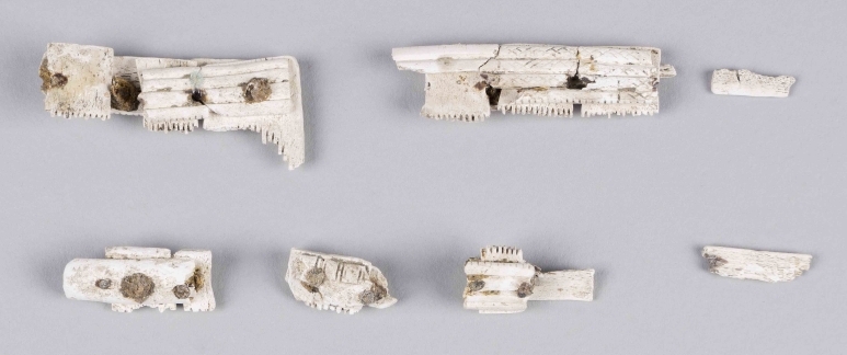 Vier verbrande kraaltjes van been bestaande uit drie...