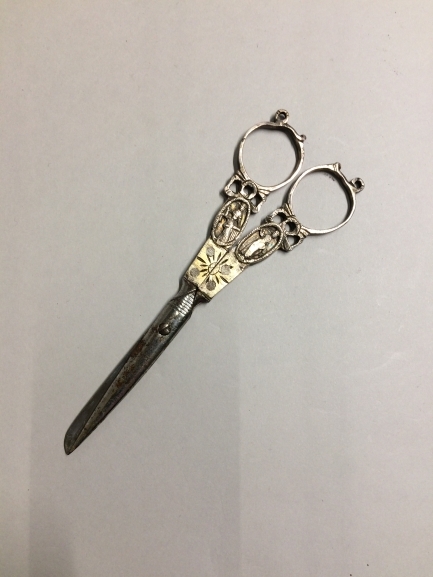 Zilveren schaar met medaillons met afbeeldingen van ...