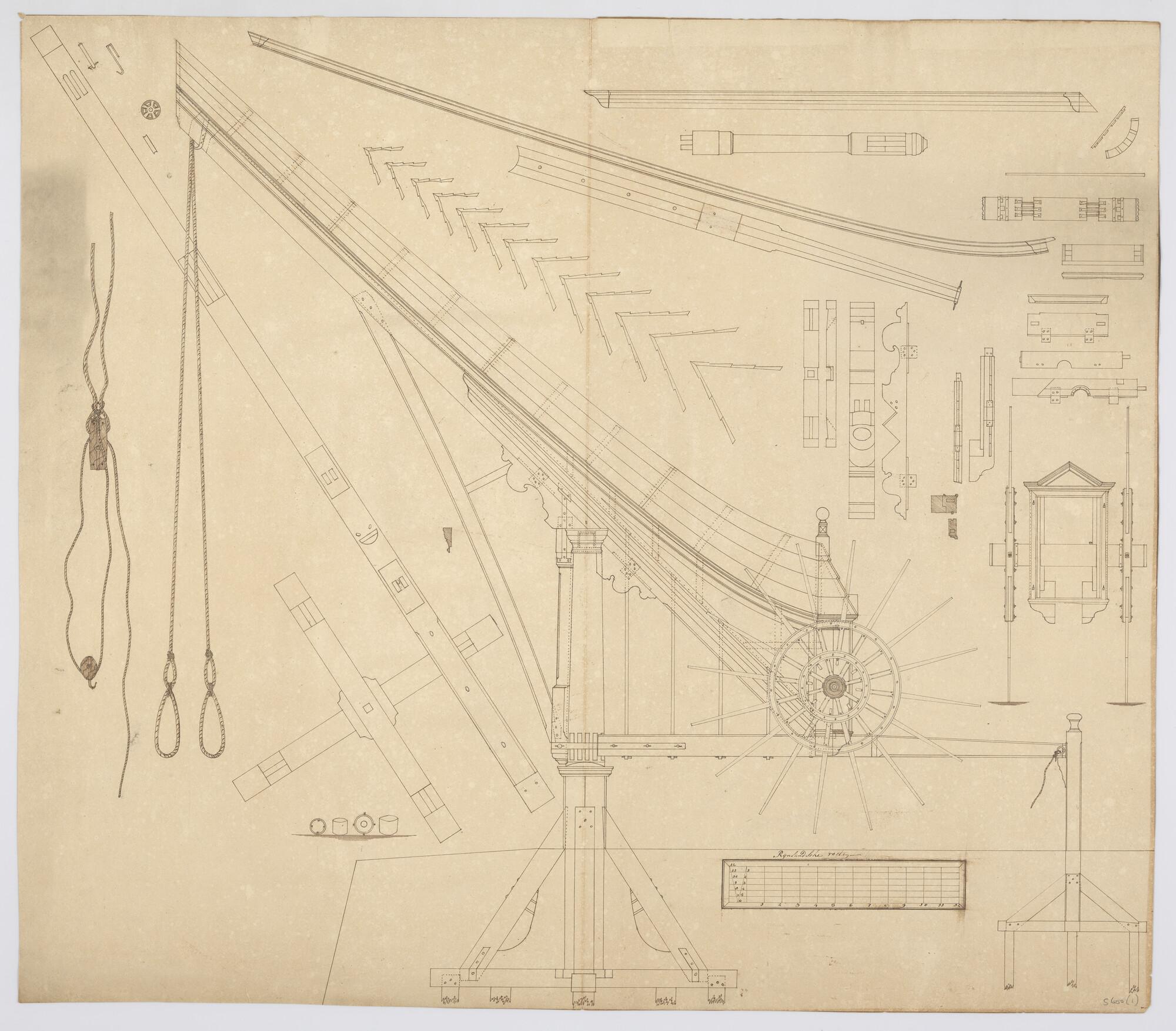 Constructietekening van de drijvers van een Franse k...
