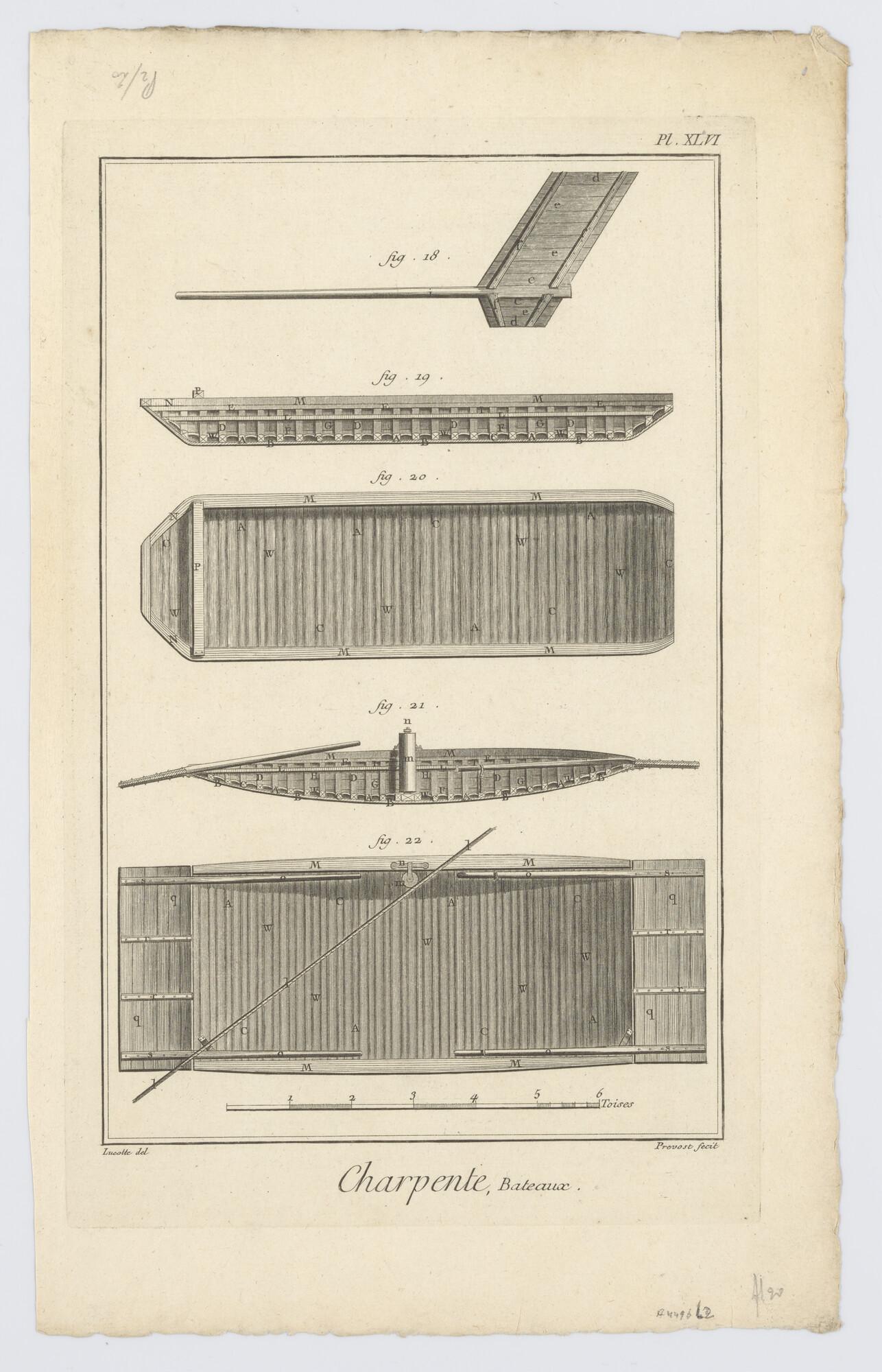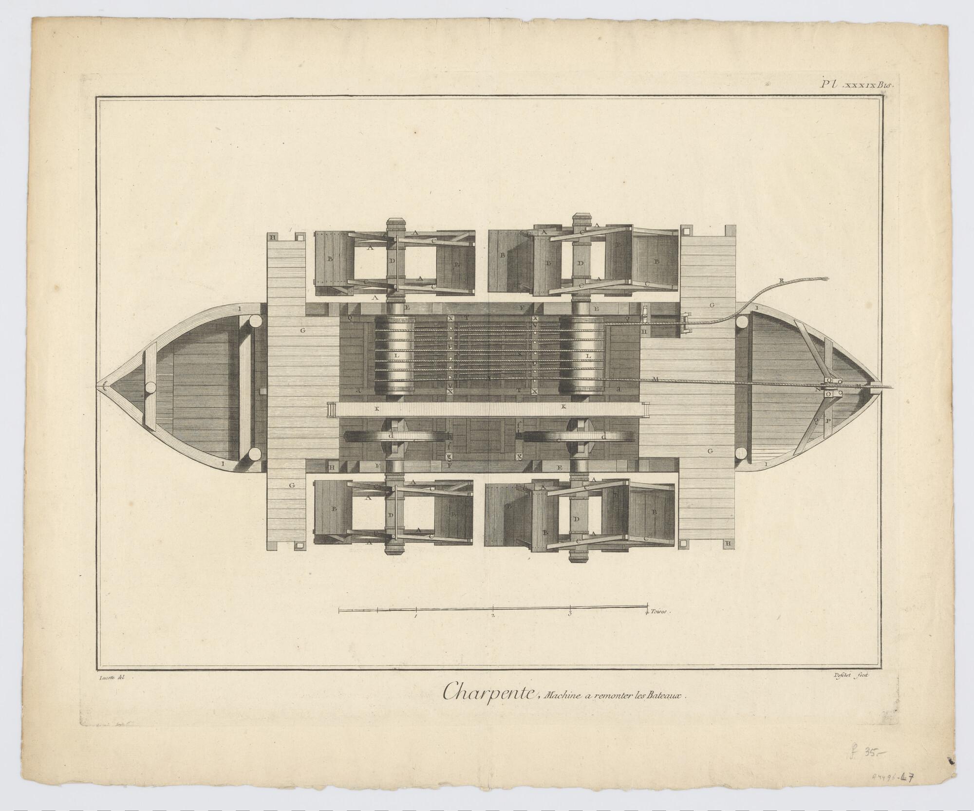 Constructietekeningen van een Frans schipbrug