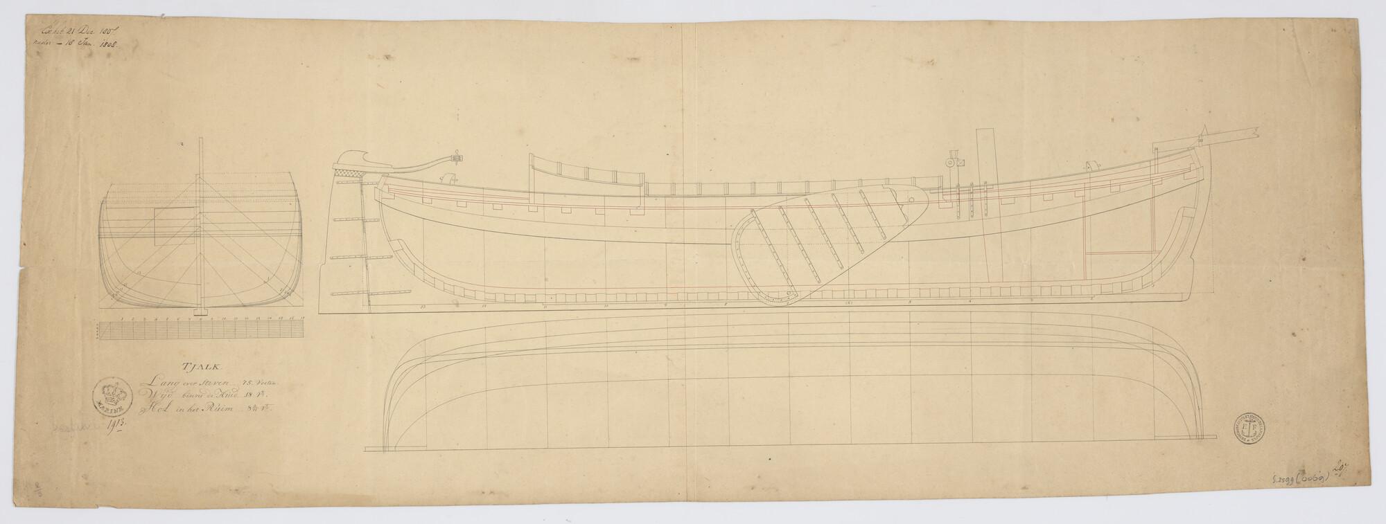Algemeen plan en lijnenplan van een tjalk