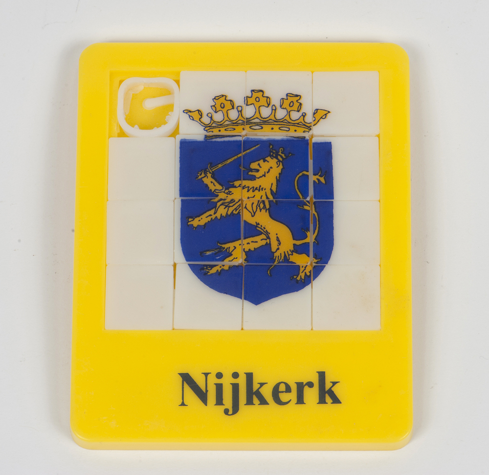 Schuifpuzzel met daarop het wapen van Nijkerk