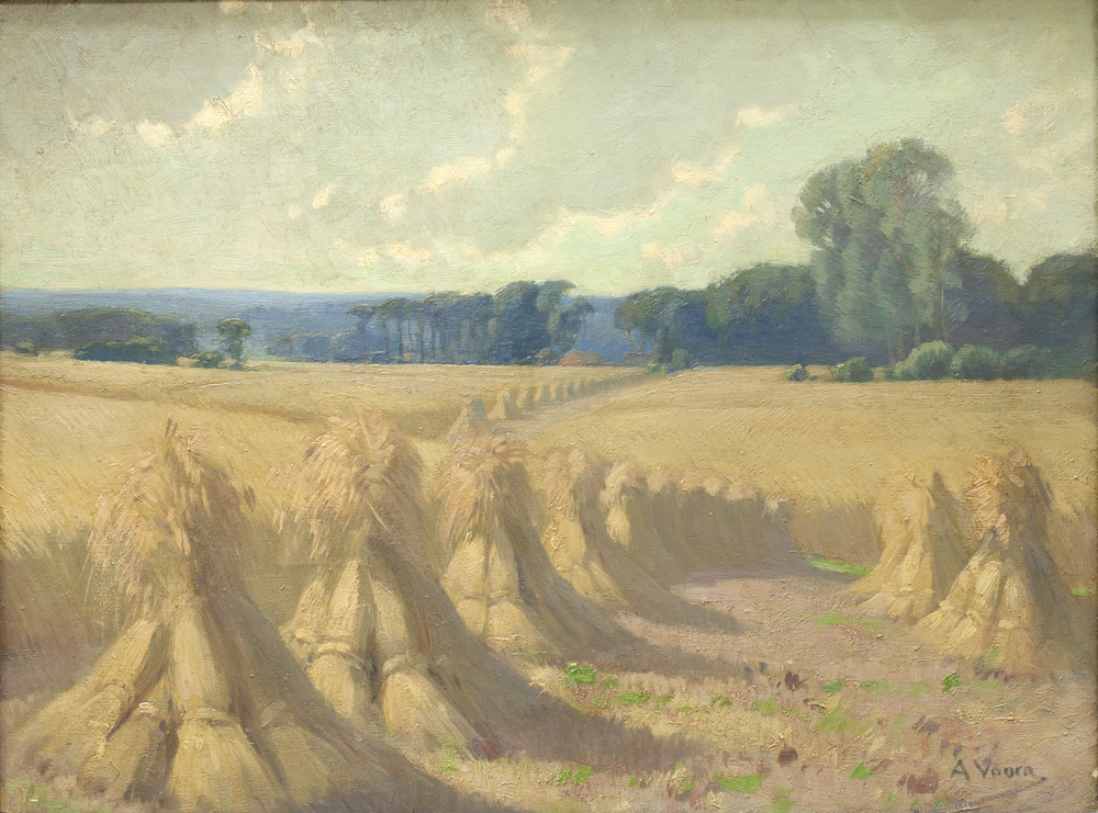 Schilderij met daarop een korenveld met schoven