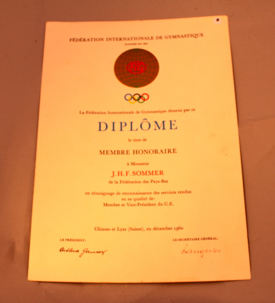 Diploma FIG Membre Honoraire J.H.F. Sommer,1960