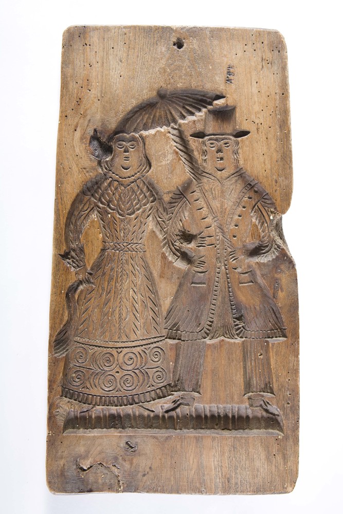 Speculaasplank van hout met afbeelding van man en vr...