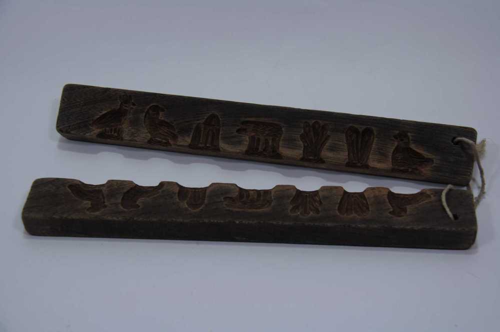 Suikerwerkplank van hout met 7 figuren, o.a. een haa...