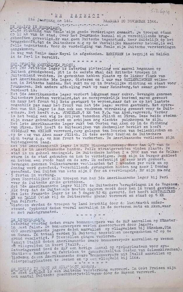 De Patriot, 2de jaargang no 144, 20 november 1944