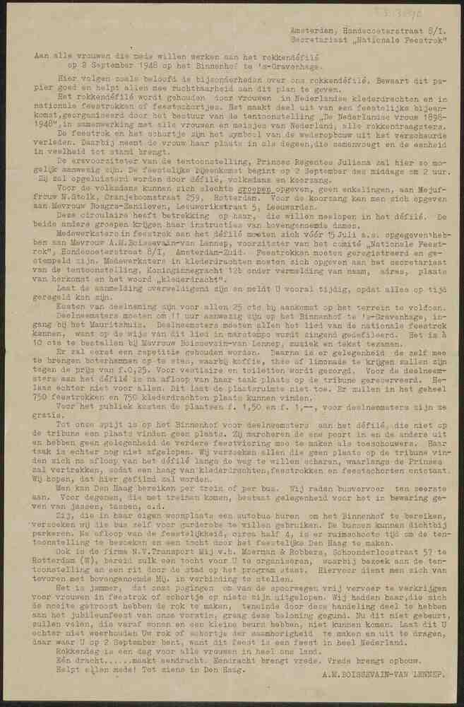 Brief van A.M. Boissevain-van Lennep, Secretariaat "...