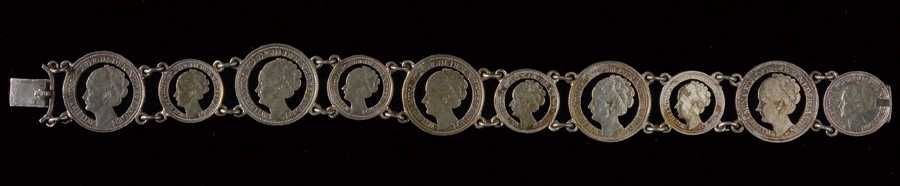 Armband, bestaande uit zilveren kwartjes en dubbeltj...